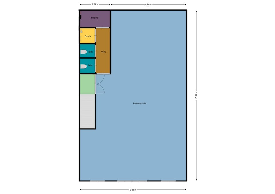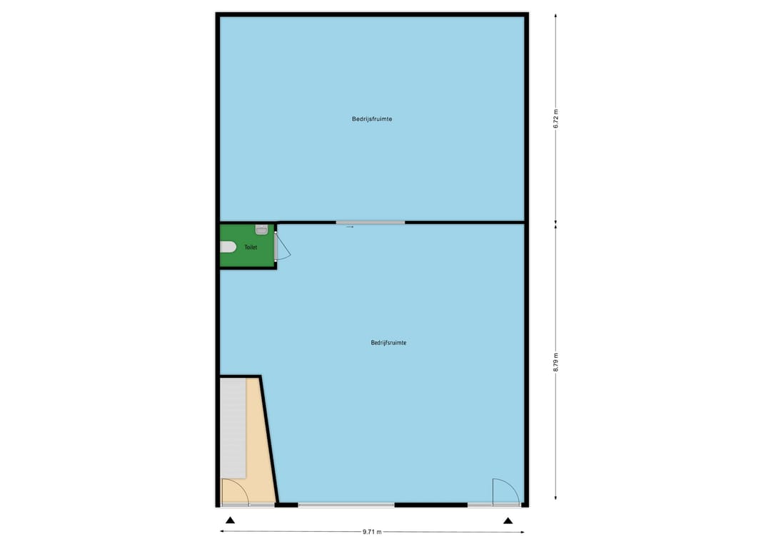 - Bedrijfsruimte en kantoorruimte hebben ieder een eigen entree;