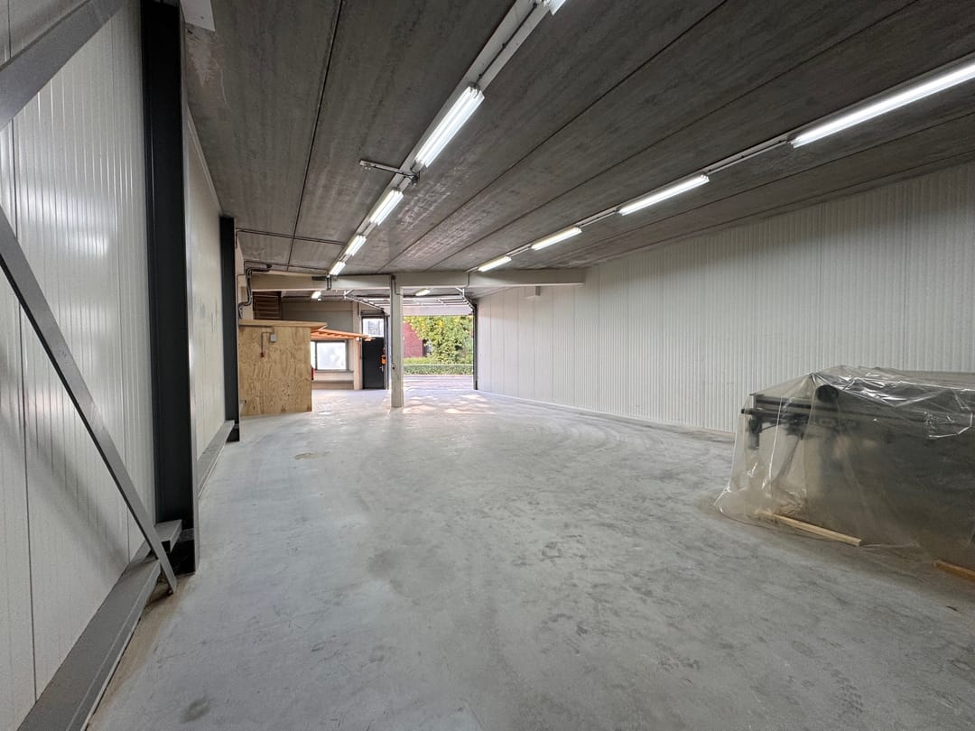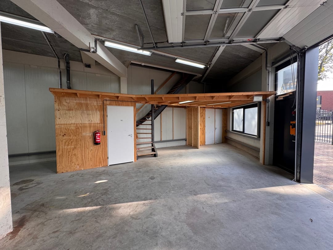 Bedrijfsruimte met een elektrische overheaddeur, kantoorruimtes, pantry en sanitaire voorzieningen