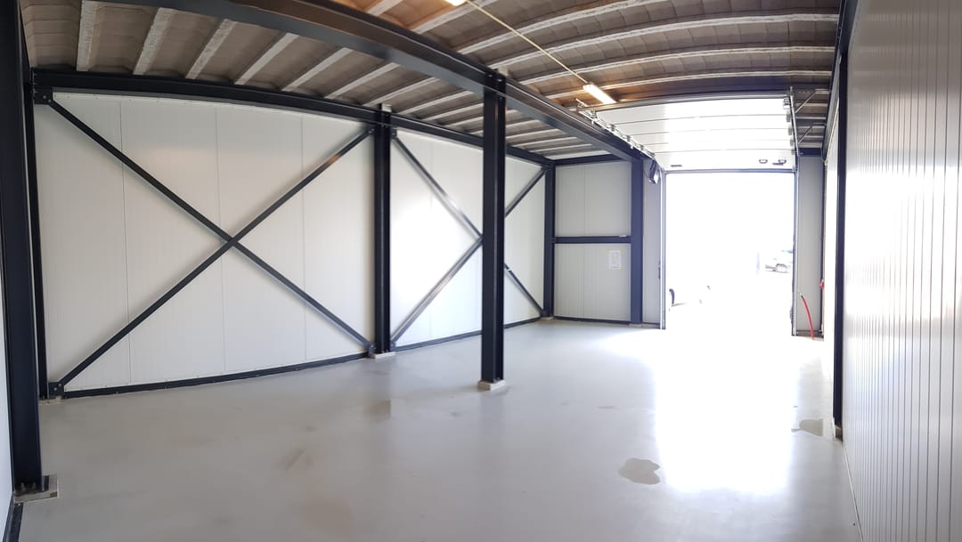 - Lichtstraten, overheaddeuren, betonvloer, toilet en pantry