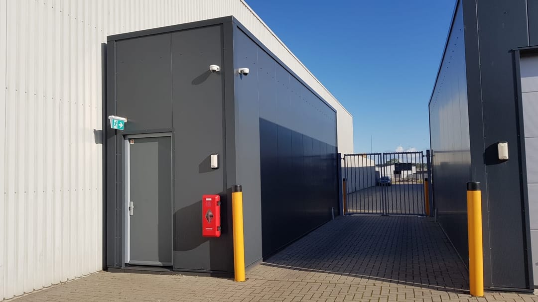 Entree via het beveiligde terrein. Toegang tot de box middels loopdeur.