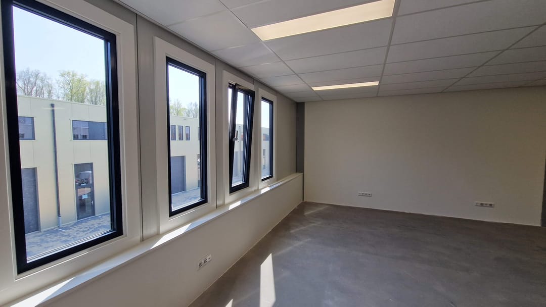 Er zijn oude foto's gebruikt, het pand staat momenteel vol met de spullen van de huidige huurder. De vloer is gecoat in de bedrijfshal, verder is alles exact hetzelfde gebleven.