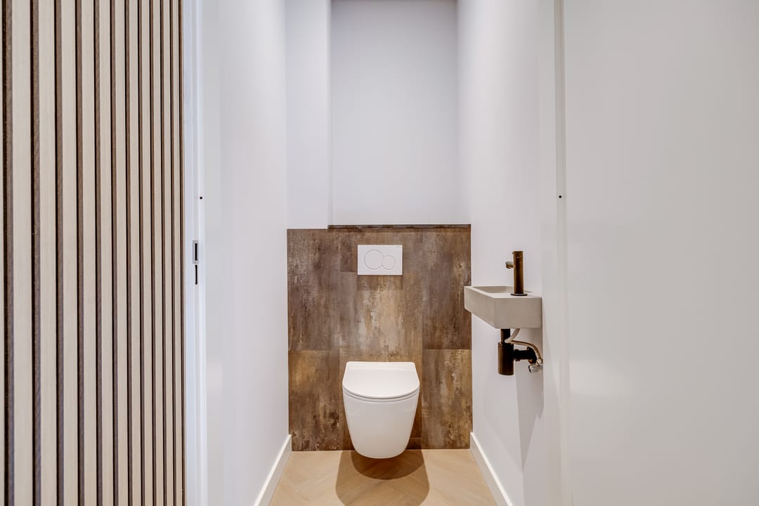 • modern ingerichte toiletruimte begane grond en verdieping;