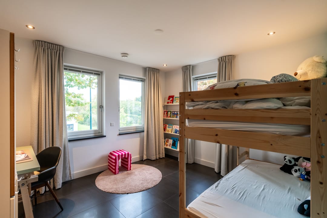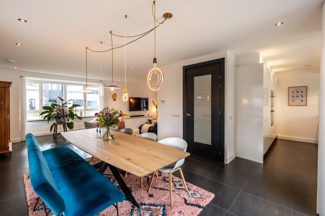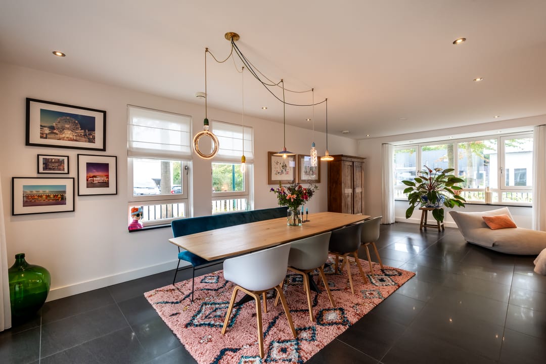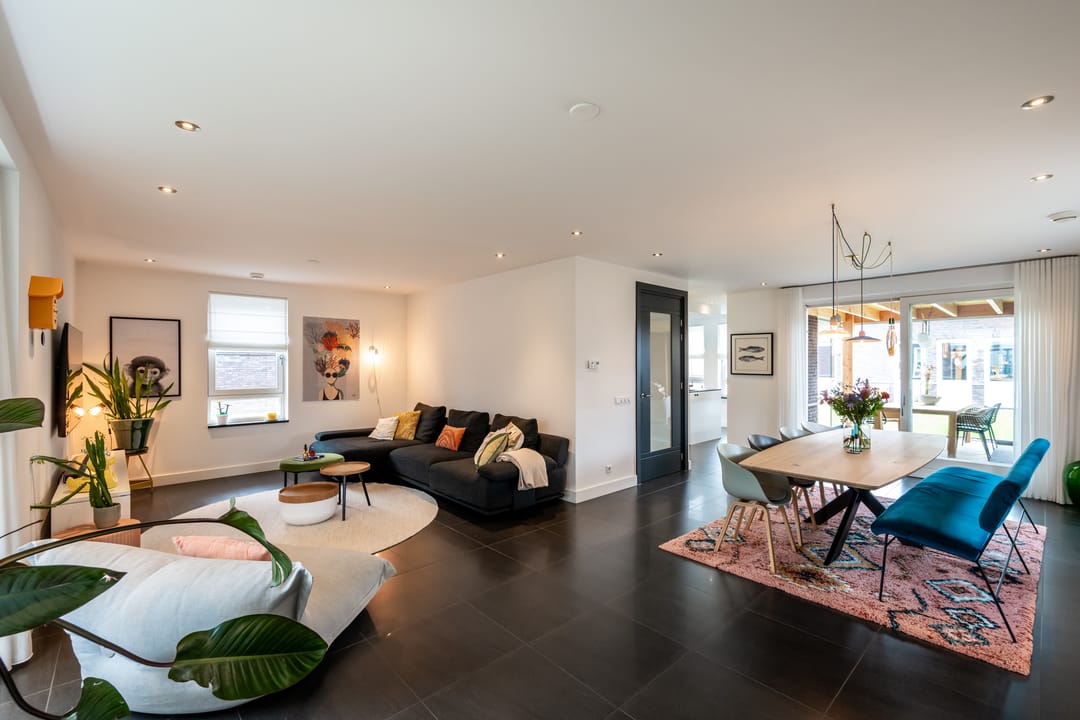 De living is ruim opgezet met een ERKER aan de voorzijde en een eetruimte aan de achterzijde, grenzend aan de tuin, voor een naadloze verbinding met buiten.