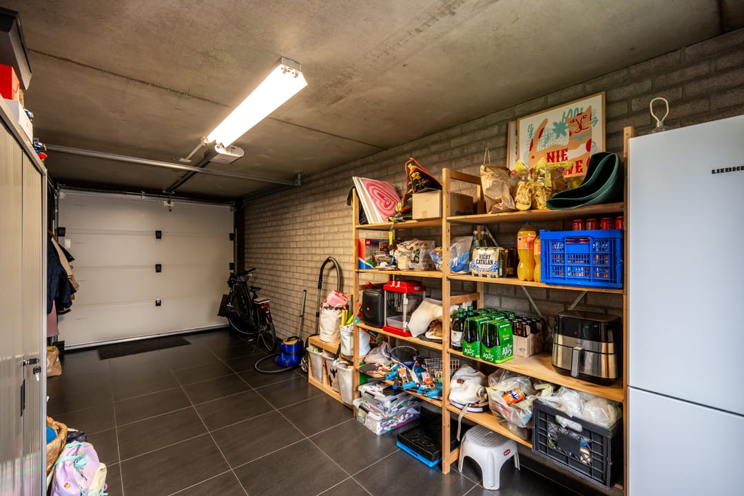 De garage is betegeld, voorzien van VLOERVERWARMING en een elektrisch bedienbare roldeur. De ruimte is ideaal als bijkeuken, maar ook uitstekend geschikt voor hobby’s of het stallen van een auto en fietsen.