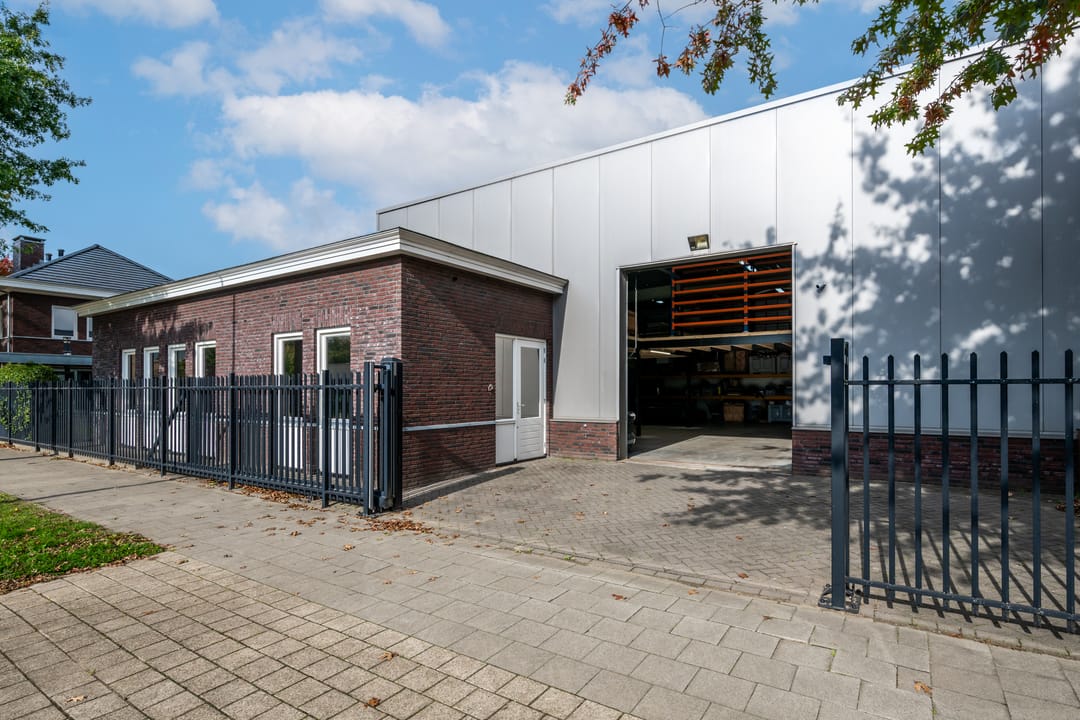 Achter de woning bevindt zich de BEDRIJFSHAL, bereikbaar via zowel de voorzijde als de zijkant van het perceel. Dankzij de HOEKligging is de toegankelijkheid optimaal.