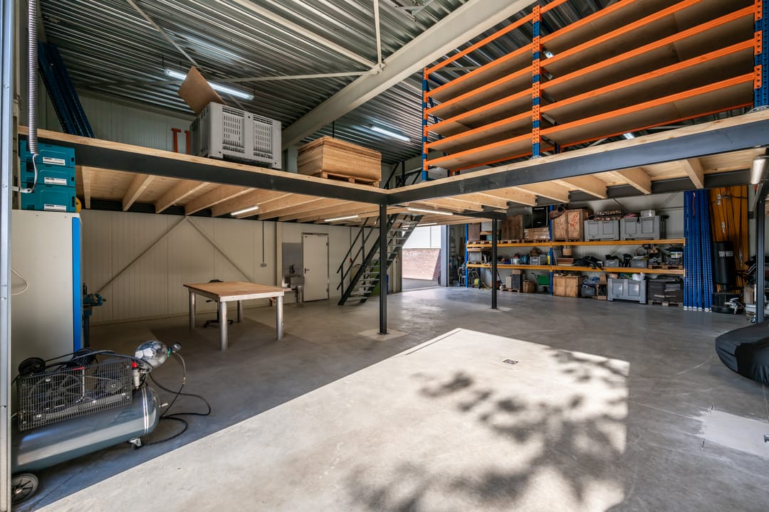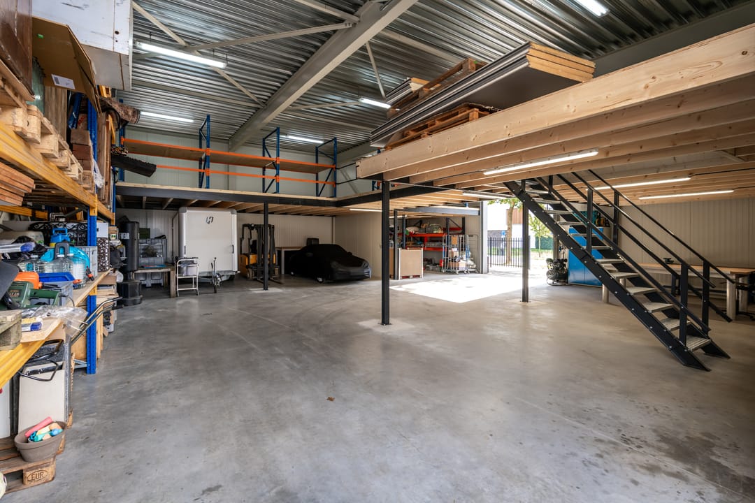 • BEDRIJFSHAL met ENTRESOL en KANTOOR-/mantelzorgruimte met sanitair