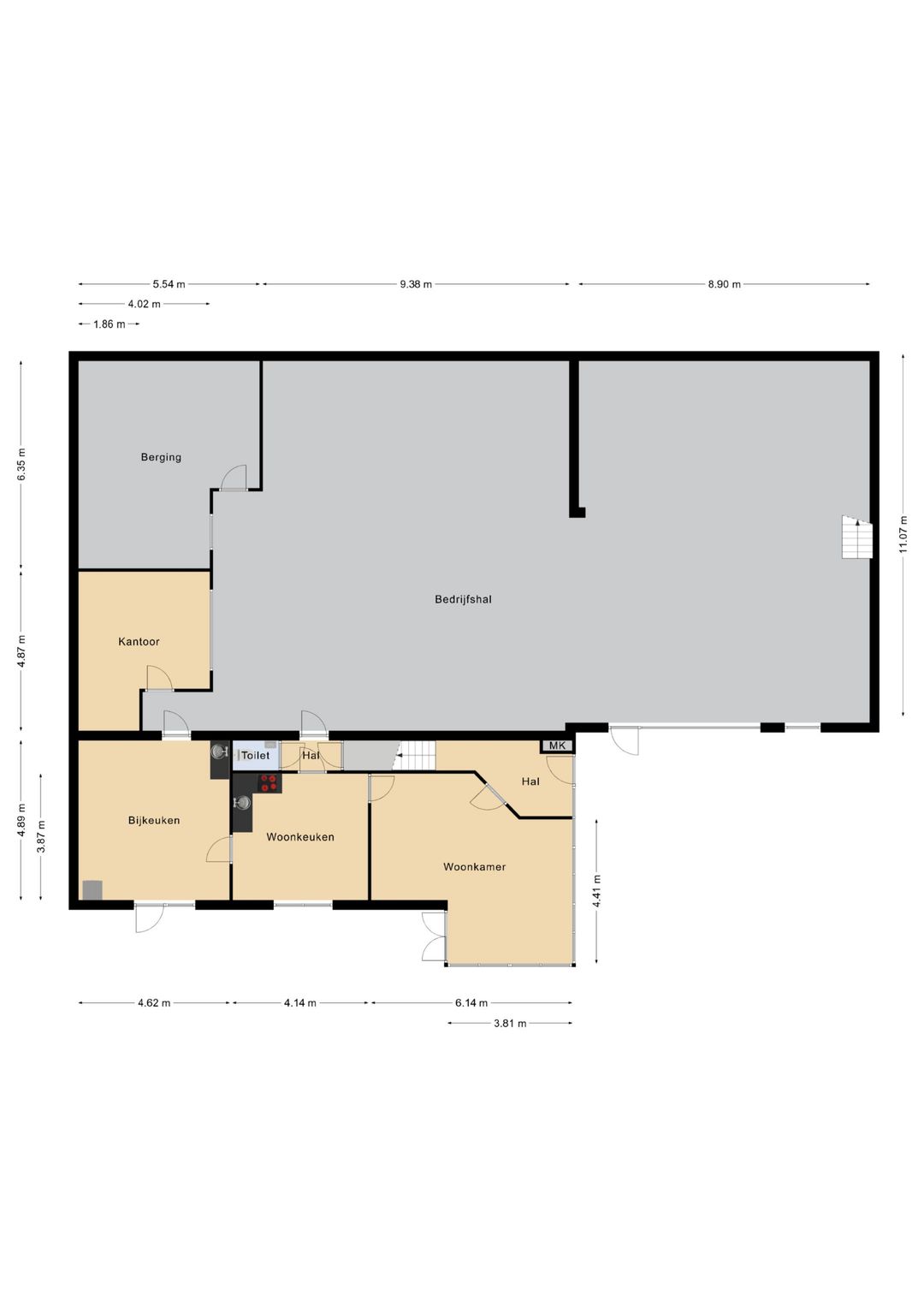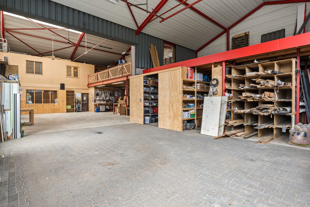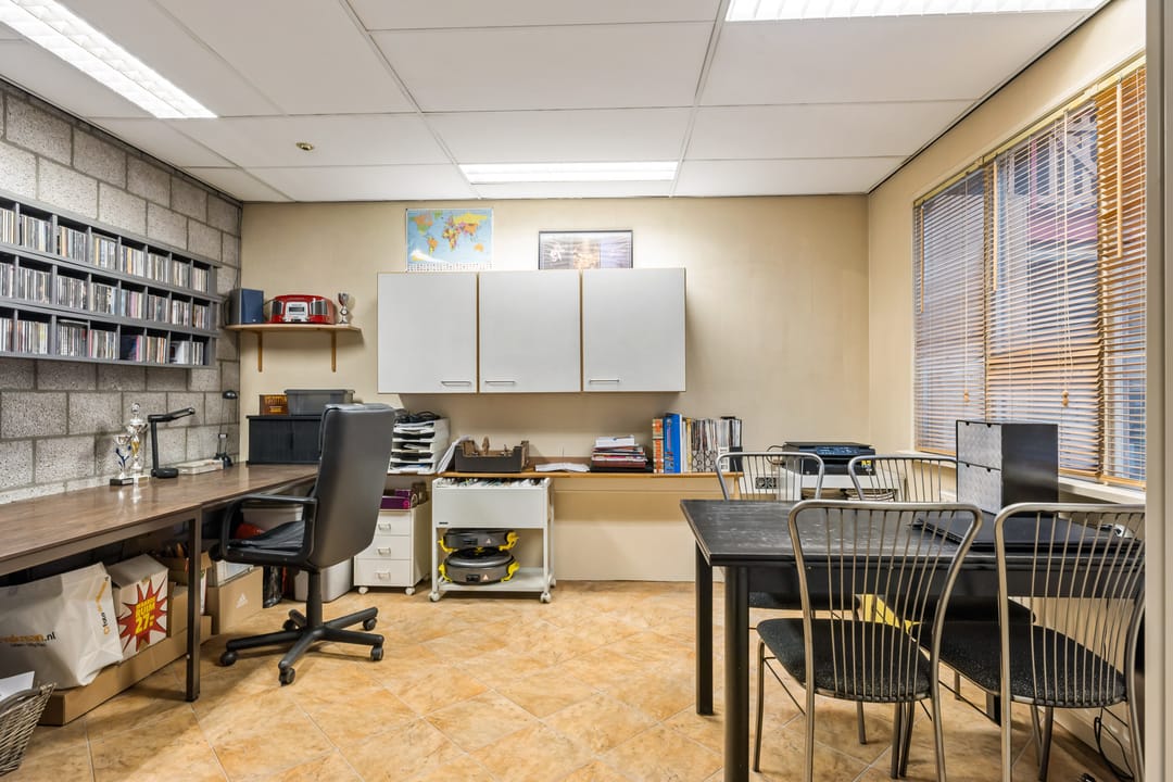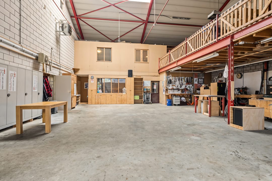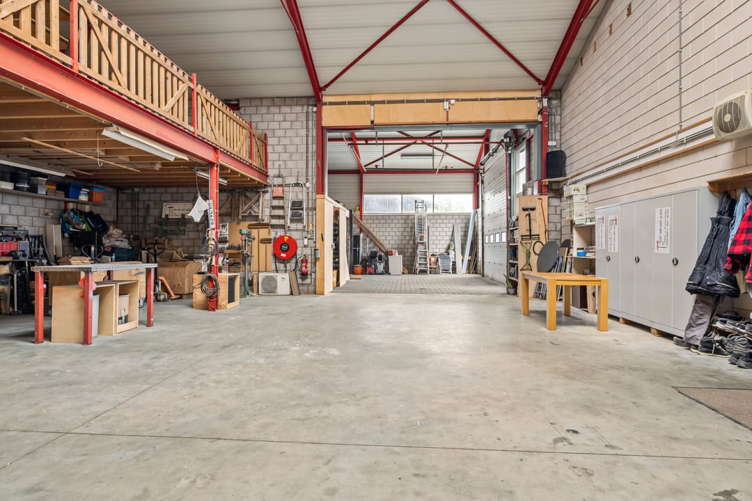 De bedrijfsruimte heeft een vloeroppervlak van ca. 265 m2. Op dit moment is in deze ruimte een kantoorruimte en een extra bergruimte geplaatst. Over de gehele lengte van 24 meter is een entresol gemaakt voor extra bergruimte. De hal is vanaf de oprit bereikbaar via een loopdeur en een daarnaast geplaatste segmentaaldeur.