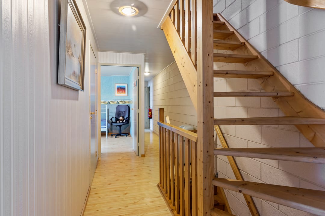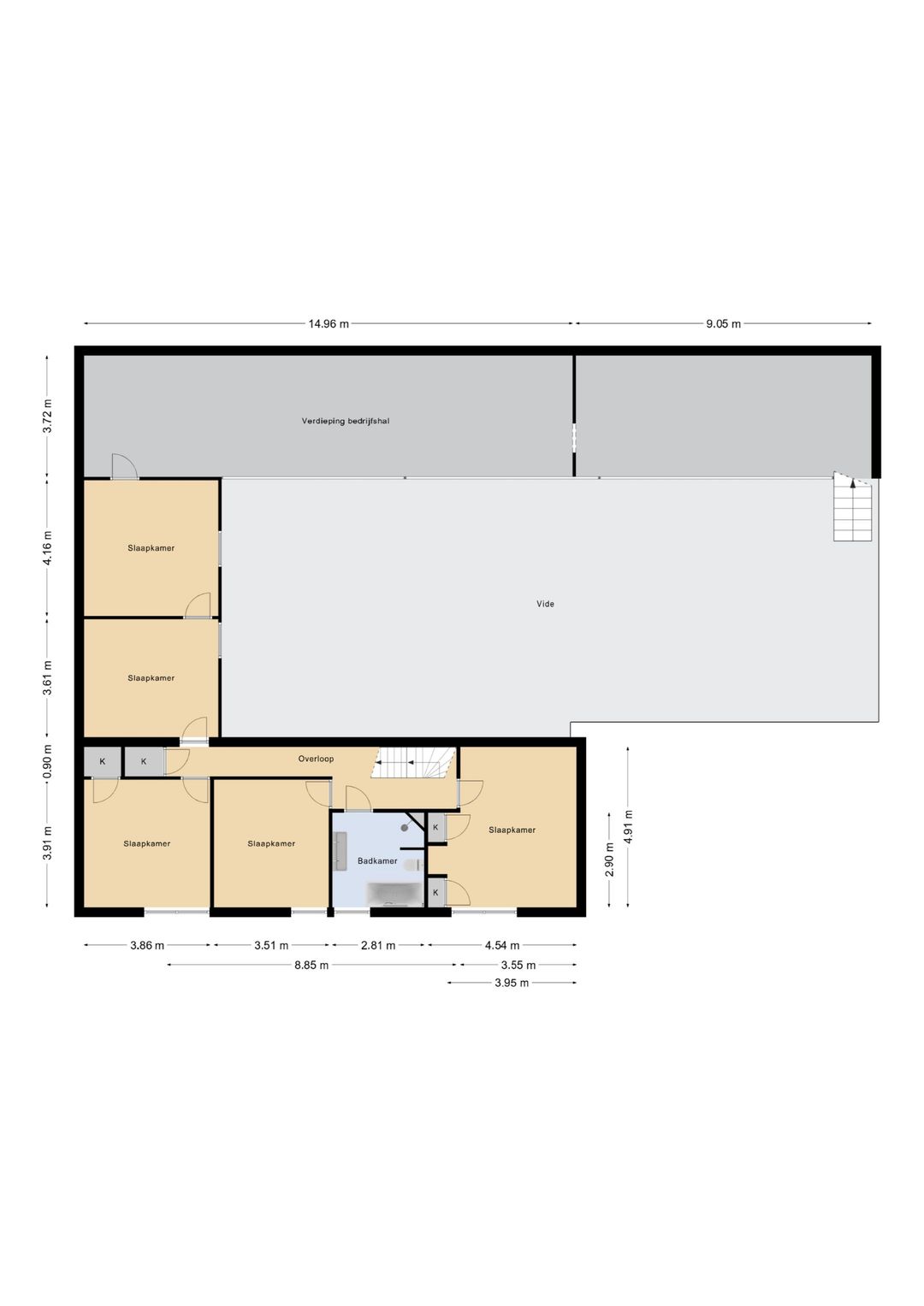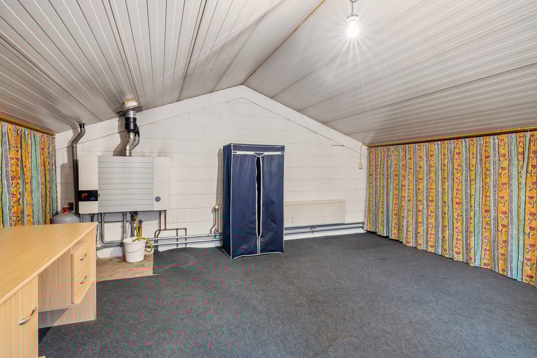 De 4de en 5de slaapkamer zijn gerealiseerd boven de kantoorruimte in de bedrijfshal. Slaapkamer 4 bereik je vanuit de hal in het woongedeelte. De 5de slaapkamer bereik je via slaapkamer 4.