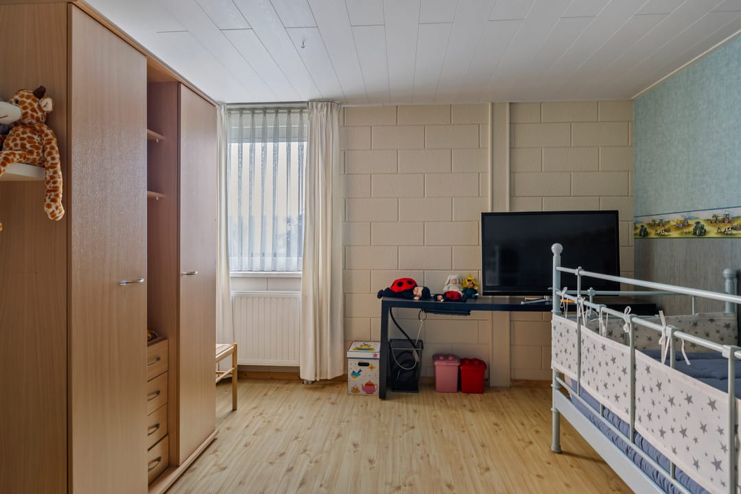 De derde slaapkamer heeft een inbouwkast en is met 15 m2 ook weer lekker ruim. De afwerking is hetzelfde als van de voorgaande slaapkamers.