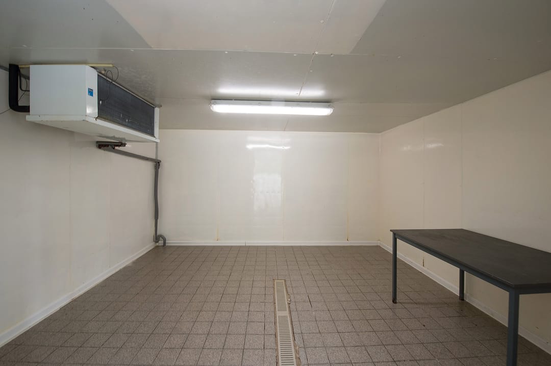 Aan de voorzijde een geheel betegelde werkruimte en koelruimte. In het achterste deel meerdere werkruimtes, koeling, opslag. Medegebruik van het kantoor en sanitair in overleg.