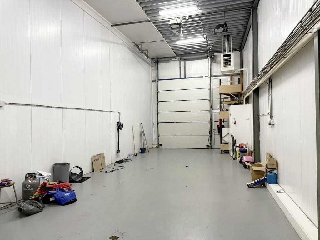 - Overheaddeuren, krachtstroom, betonvloer, heater, toilet, pantry en te openen ramen