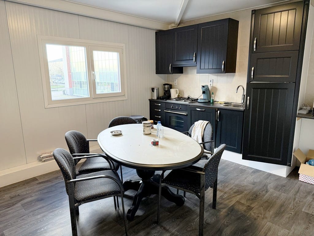 Op de verdieping bevindt zich een kantoor, een keurig hangtoilet en een keuken/kantine met een mooi compleet keukenblok o.a. voorzien van vaatwasser, gasfornuis, inbouwoven en een close in boiler.