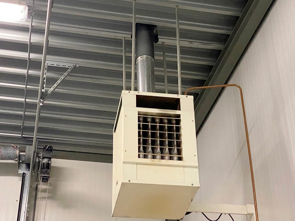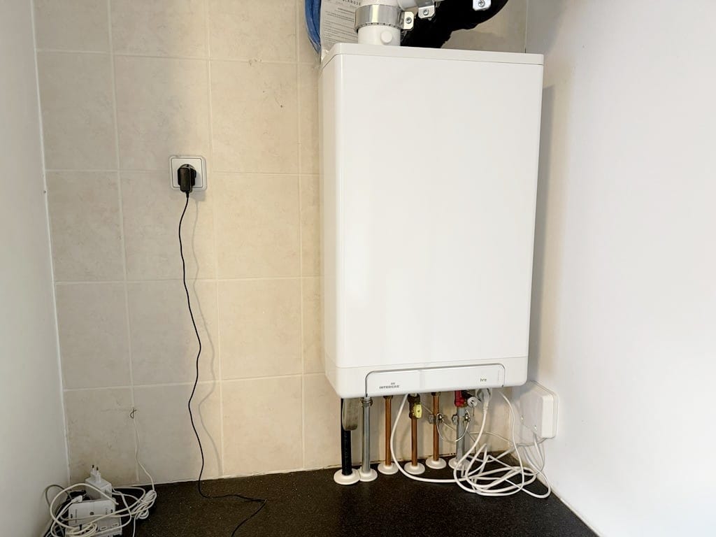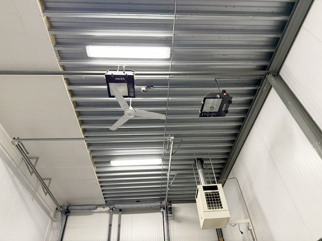 De verwarming kan plaatsvinden door middel van de cv ketel Intergas(bouwjaar 2022), maar ook door middel van een plafond heater die de hele loods in 10 minuten op een heerlijke temperatuur brengt.