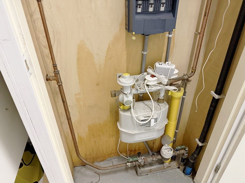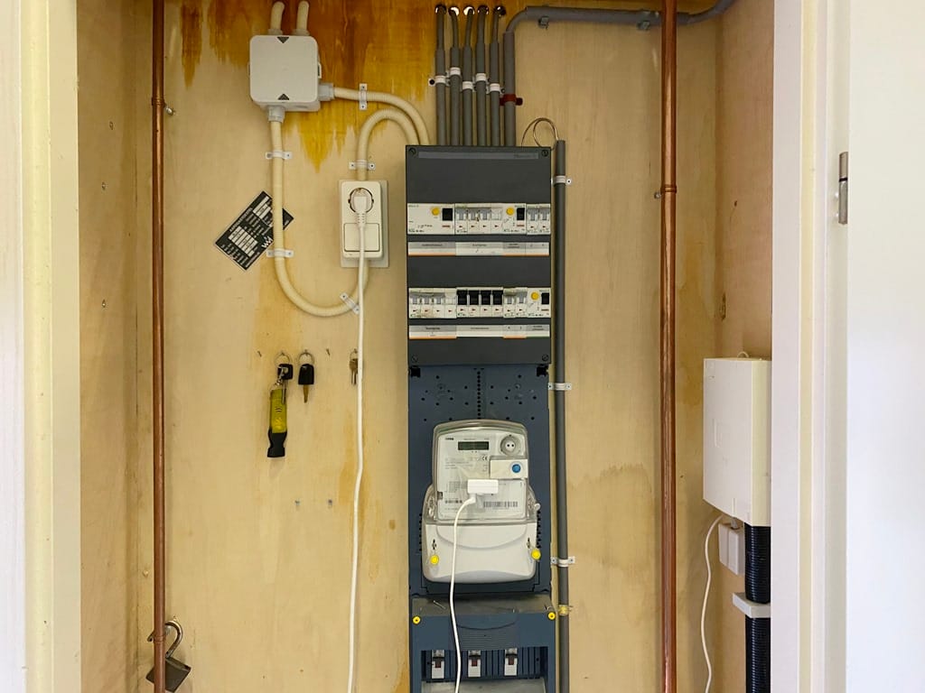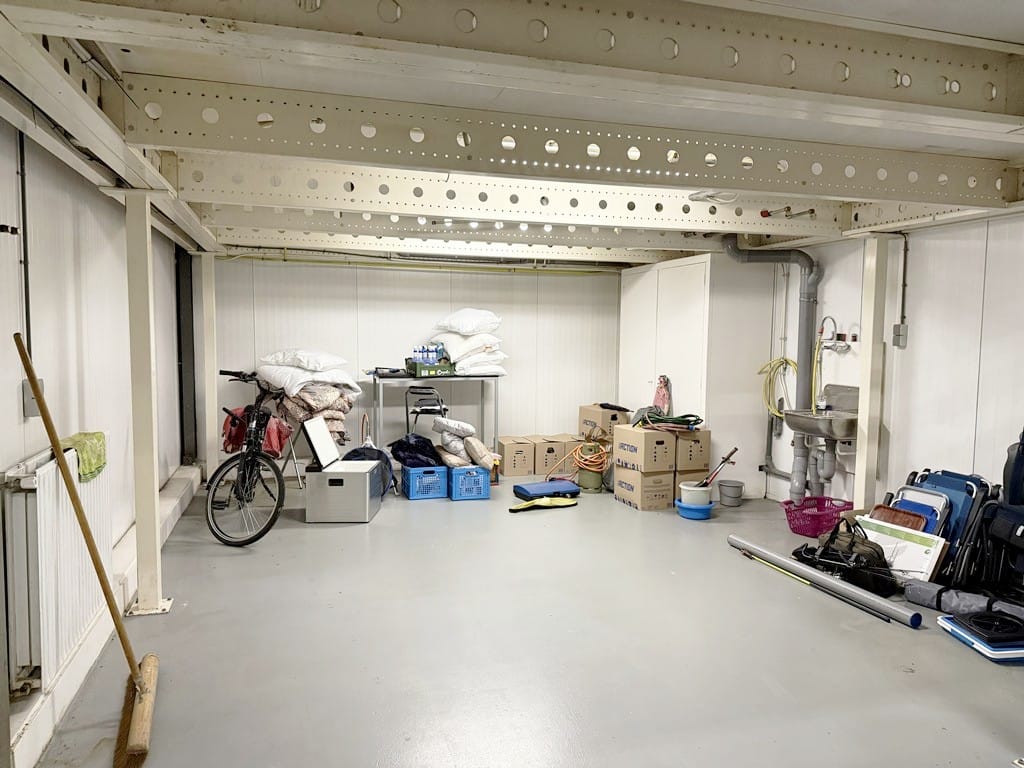Onder de verdiepingsvloer is een ruimte met een werkwasbak en een aansluiting voor een wasmachine.