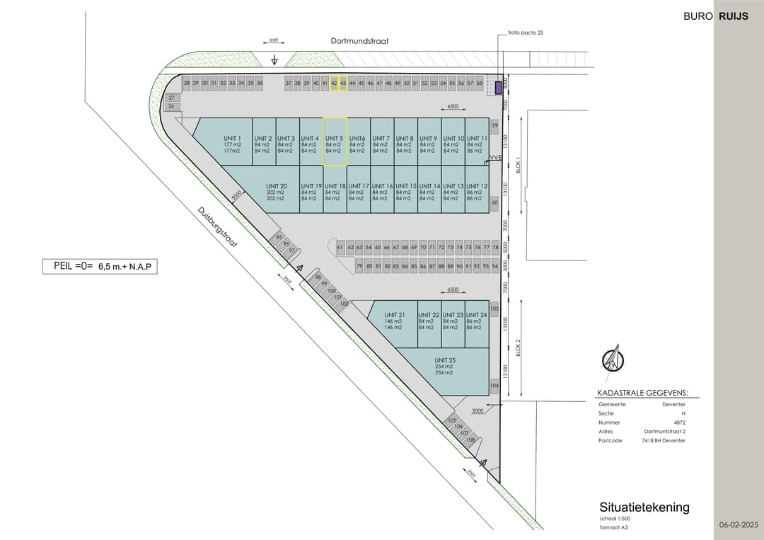 Op een prominente locatie aan de Dortmundstraat, binnen nieuwbouwproject 'De Hanze' in Deventer, is deze representatieve bedrijfsunit beschikbaar. Gelegen op bedrijventerrein 'Kloosterlanden' – een uitstekend bereikbare plek voor ondernemers – biedt deze unit ca. 168 m² bruto vloeroppervlak. Door de moderne uitstraling en praktische indeling is de unit geschikt voor diverse doeleinden. Bij de unit behoren twee parkeerplaatsen. Daarnaast wordt de unit voorzien van diverse meerwerkopties, waaronder slangen voor vloerverwarming op de begane grond én de verdieping, een afstandsbediening voor de overheaddeur en een kabel naar de parkeerplaats ten behoeve van het laden van uw auto. Deze moderne bedrijfsunit combineert een strategische ligging en comfort, dé ideale plek om uw onderneming te laten groeien!