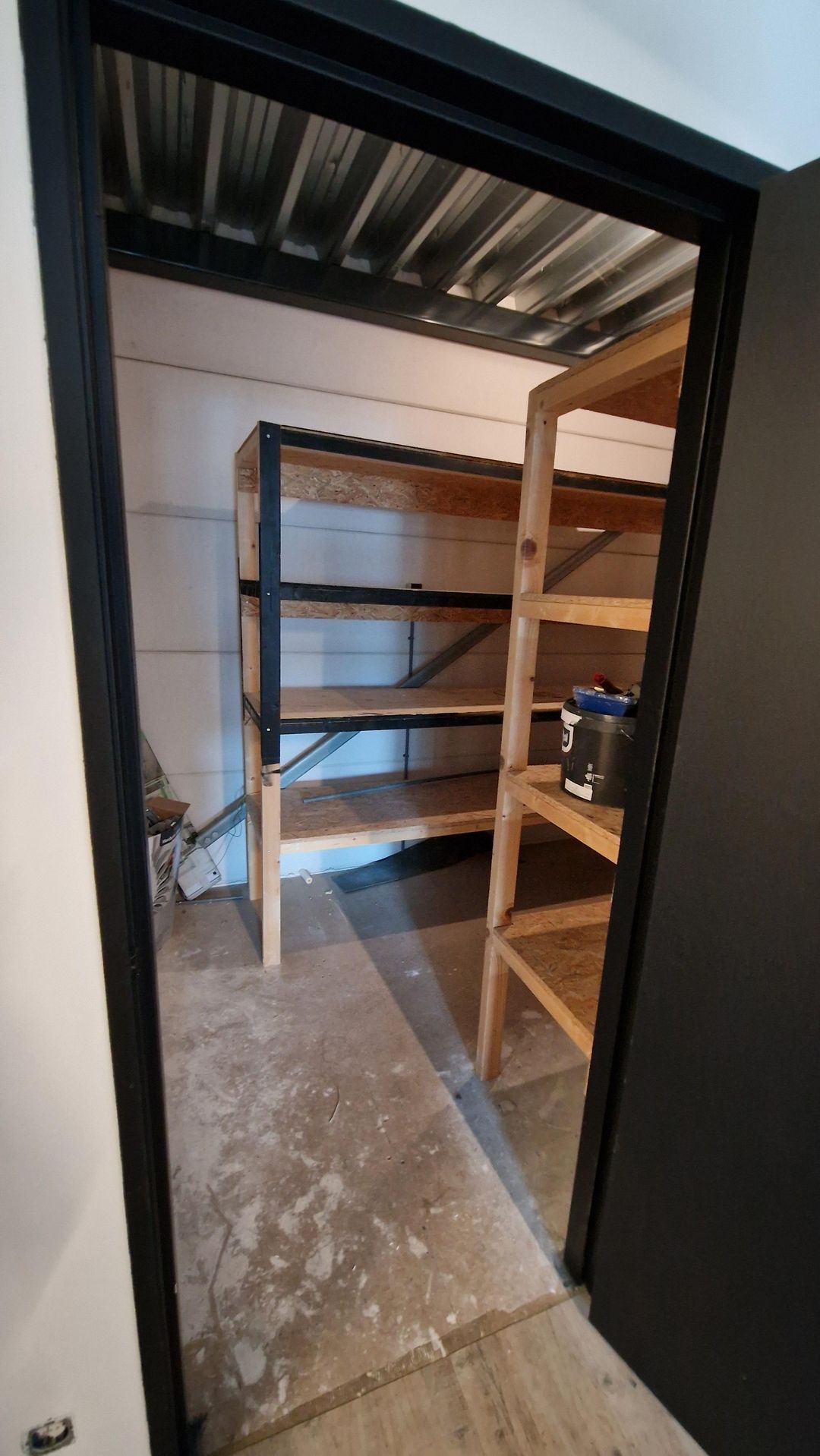 Voorzien van toilet op de b.g.g. en pantry op de verdieping. Twee airco-units, verlichting, overheaddeur, aparte loopdeur, houten trap, volledige verdieping.