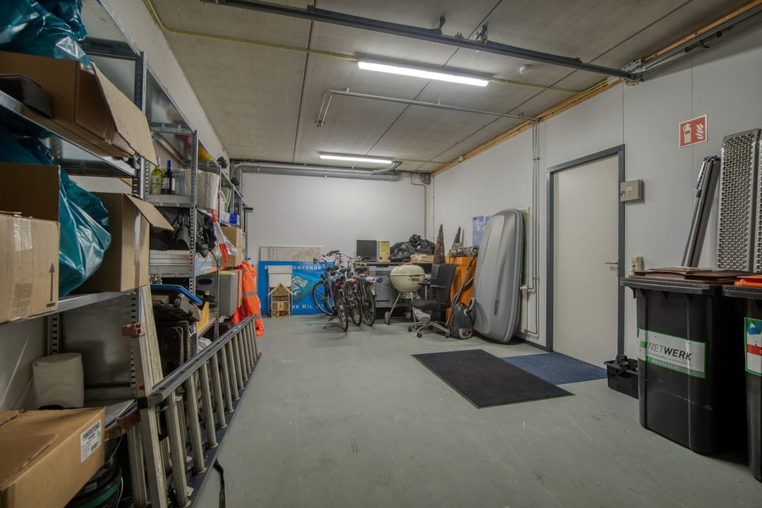 - Overheaddeuren, betonvloer, toilet en pantry
