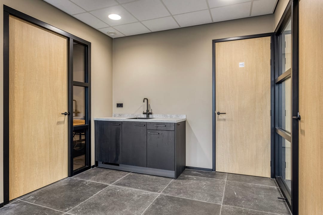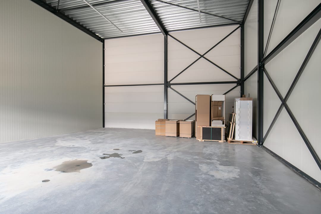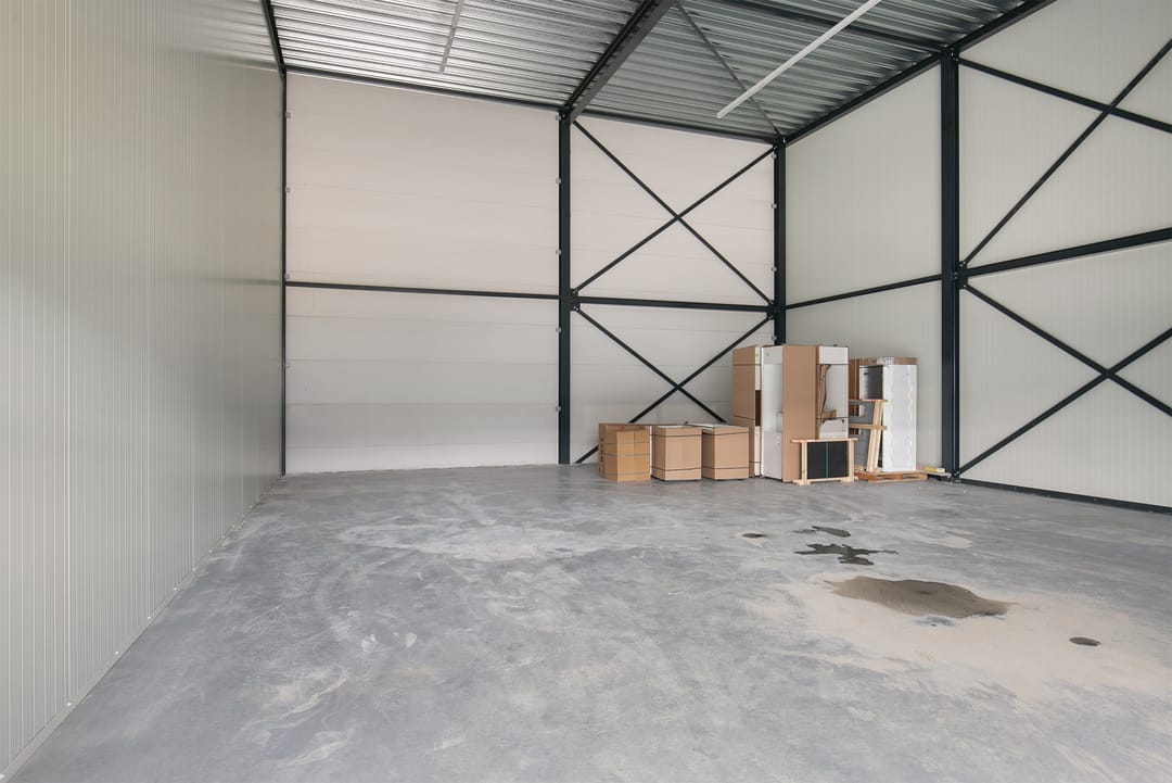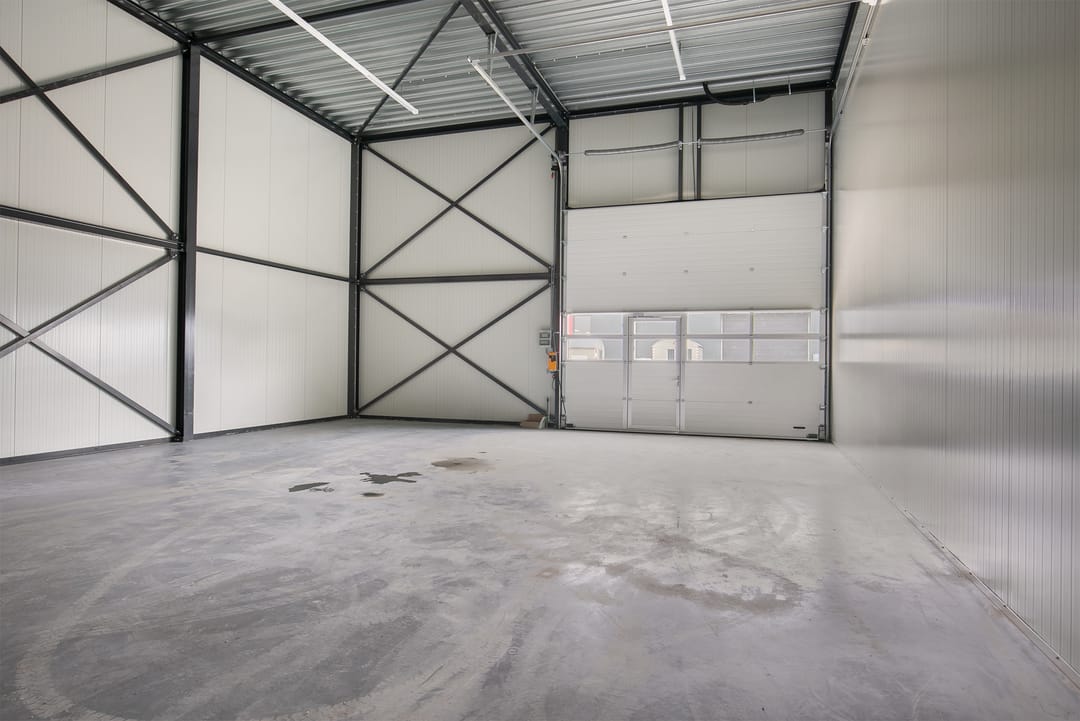- Overheaddeuren, krachtstroom, betonvloer, toilet, mechanische ventilatie en inbouwarmaturen