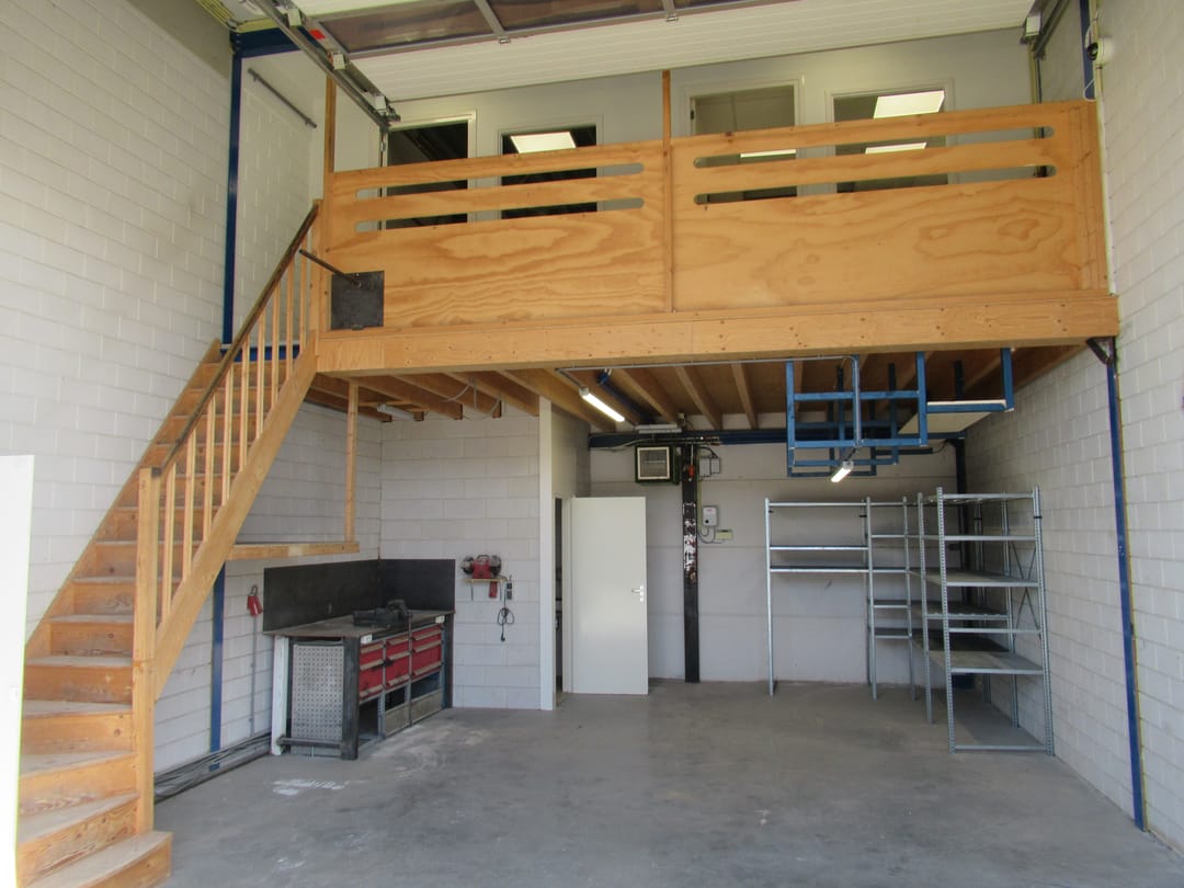 De bedrijfsunit beschikt over een eigen entree via zowel een loopdeur als een handmatige overheaddeur. De begane grond is ingericht als bedrijfs-/opslagruimte. Op de verdieping bevinden zich een kantoorruimte en een kantine met keukenblok.