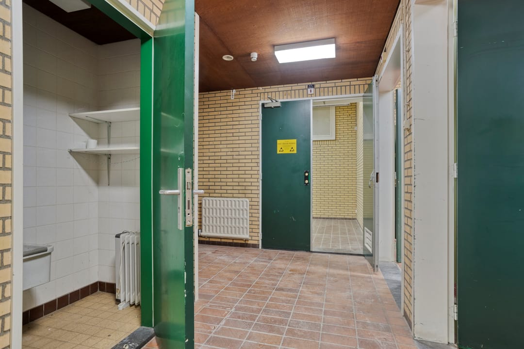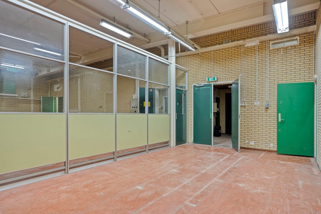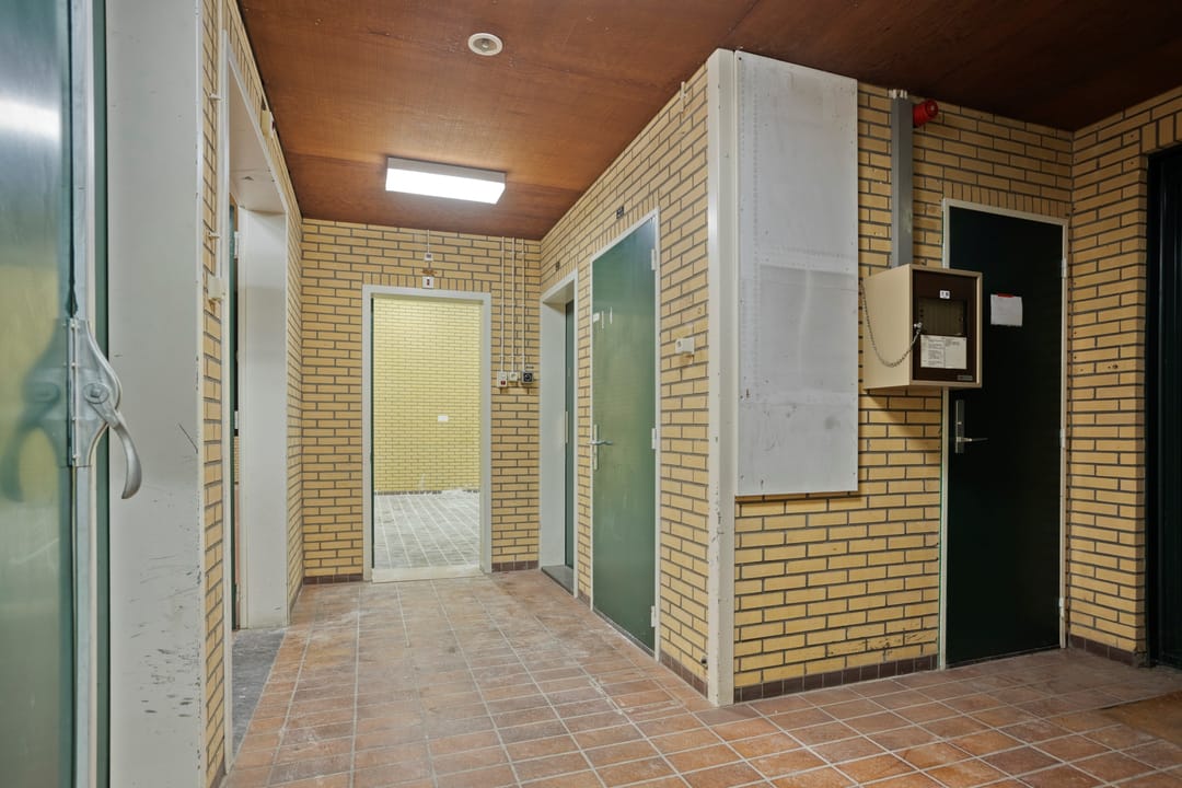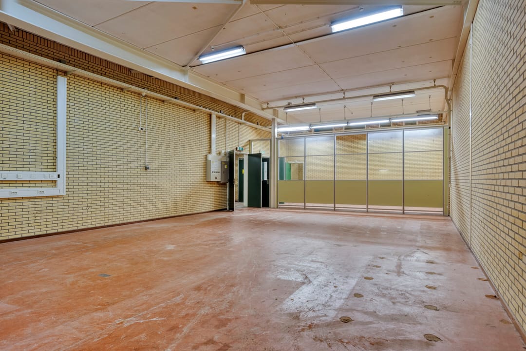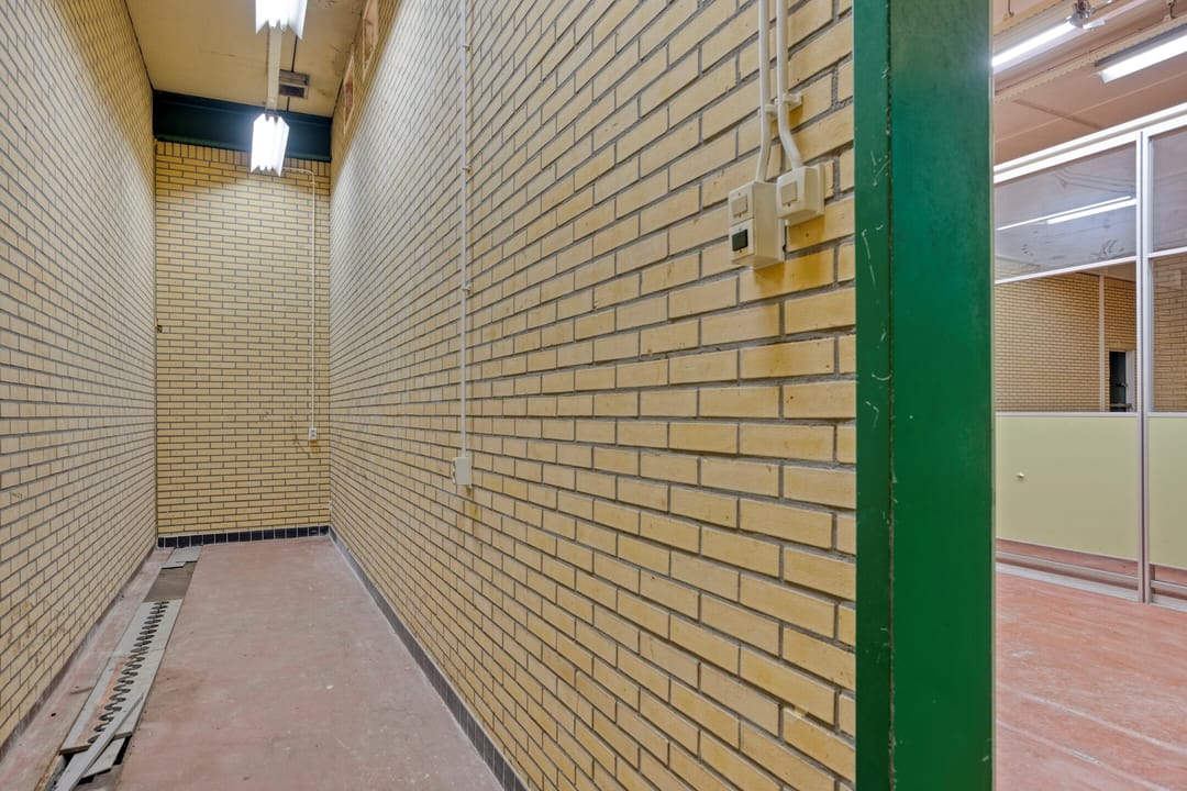 Centraal in het gebouw bevindt zich een verkeersruimte van circa 13,6 m² VVO. Deze ruimte fungeert als ontsluitingsgebied en biedt toegang tot de verschillende ruimten, de opslag en de facilitaire ruimten. Vanuit deze zone zijn de belangrijkste functies logisch en efficiënt bereikbaar.