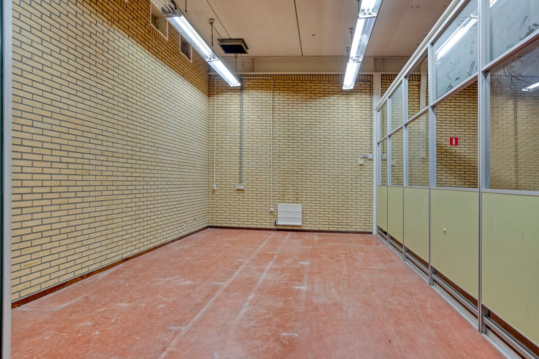 Het gebouw beschikt over meerdere opslagruimten, waaronder een opslagruimte aan de linkerzijde van het gebouw en een kleinere opslagruimte nabij de centrale kern. Deze ruimten zijn functioneel gepositioneerd ten opzichte van de kantoren en dragen bij aan praktisch gebruik van het pand.