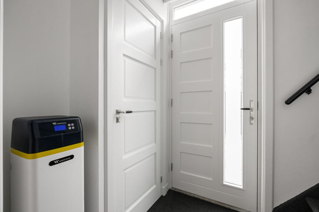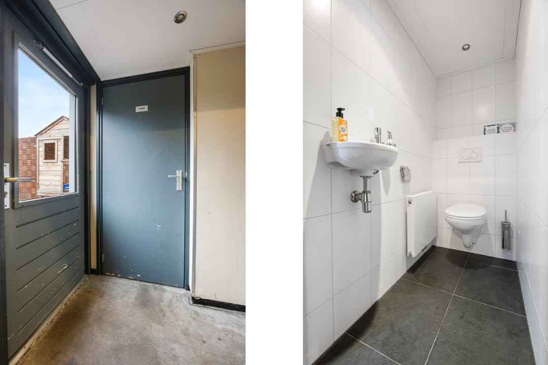 Aan de achterzijde van de woning is nog een achter entree met toegang tot het toilet en vaste kast voor jassen, schoen etc.