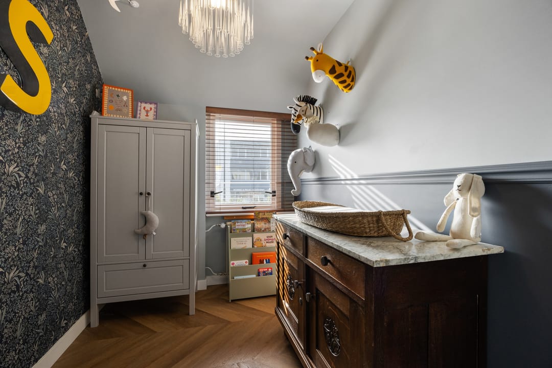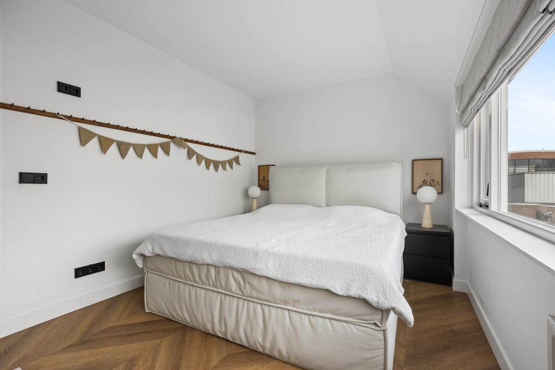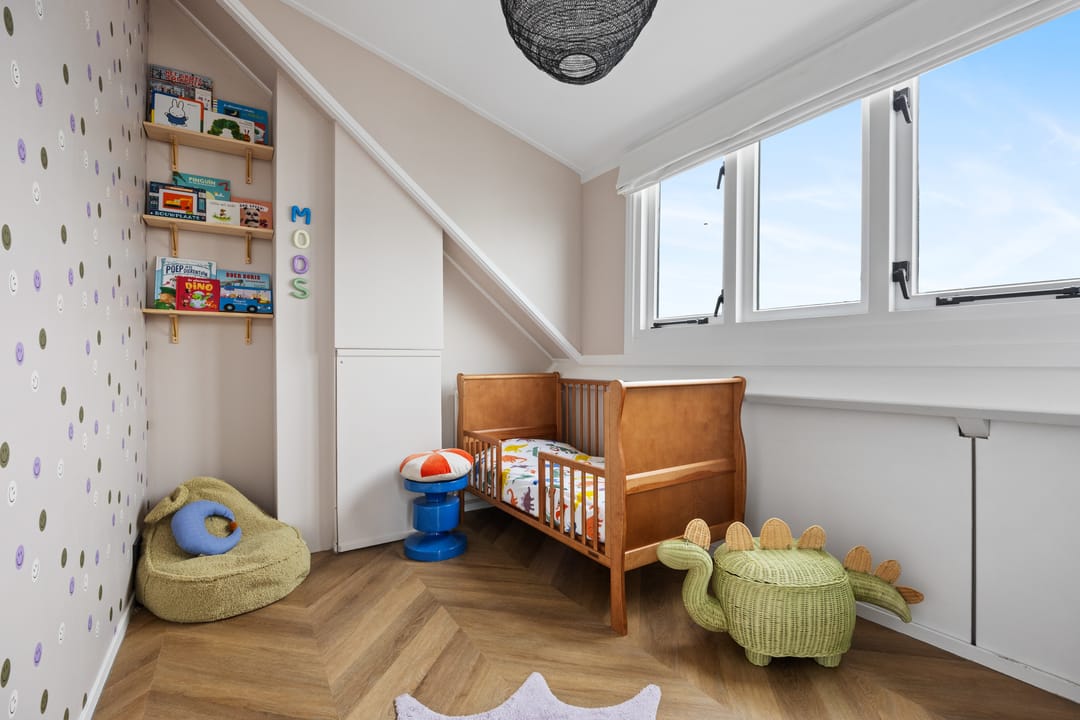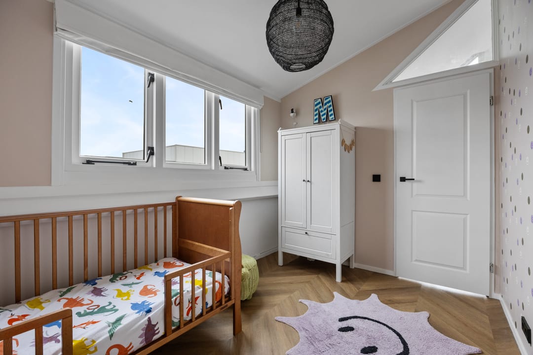 De overloop geeft toegang tot twee goed bemeten slaapkamers, een separaat toilet en de luxe badkamer. De hoofdslaapkamer is aan de achterzijde gelegen en beschikt over vaste kastruimte en grote ramen die zorgen voor veel lichtinval. De tweede slaapkamer is een ideale kinderkamer.