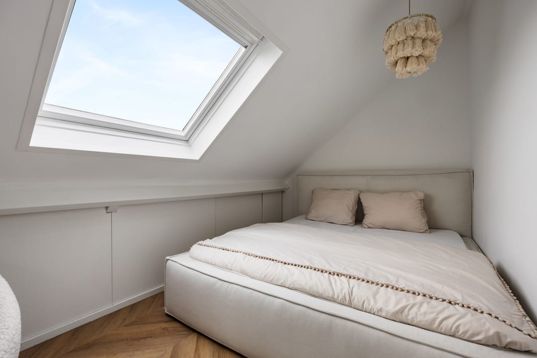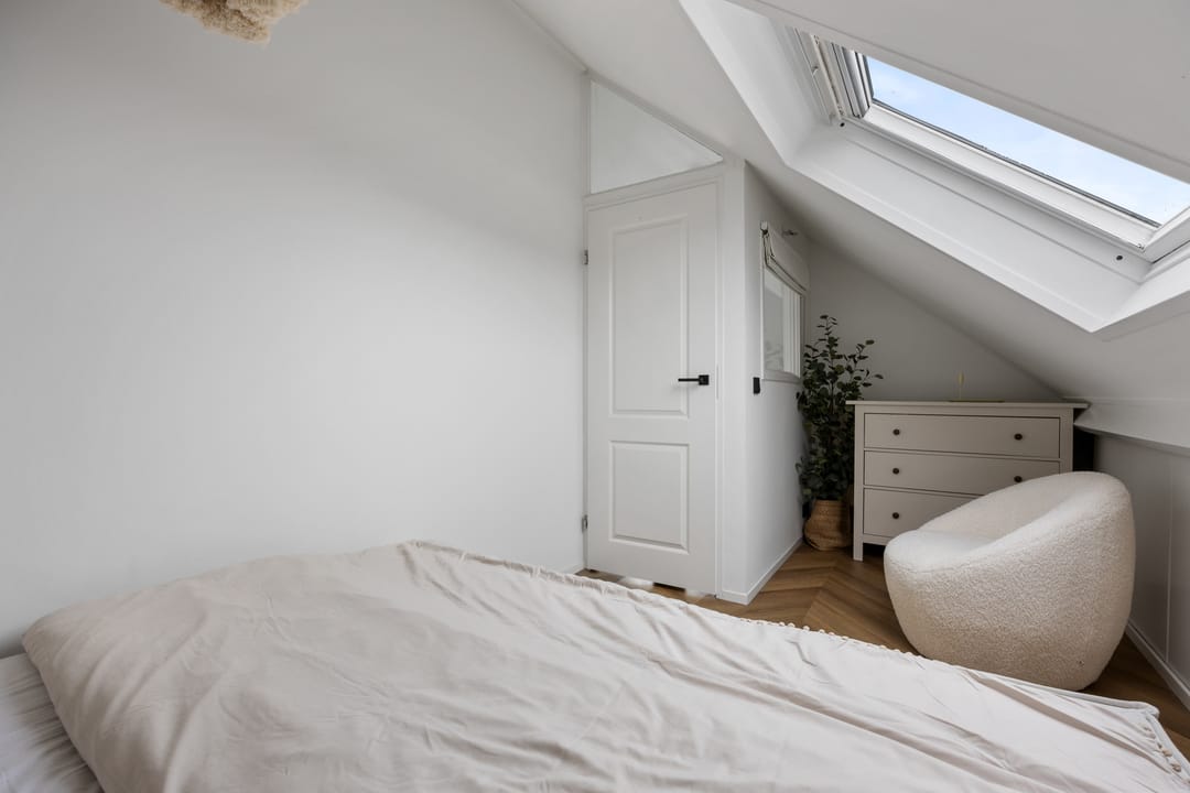 Op de tweede verdieping bevinden zich nog twee volwaardige slaapkamers, de ene voorzien van een Velux dakraam en de slaapkamer aan de achterzijde is extra ruim door het dakkapel. Beide slaapkamers zijn voorzien van extra bergruimte achter de knieschotten. Deze verdieping maakt het huis ideaal voor een gezin.