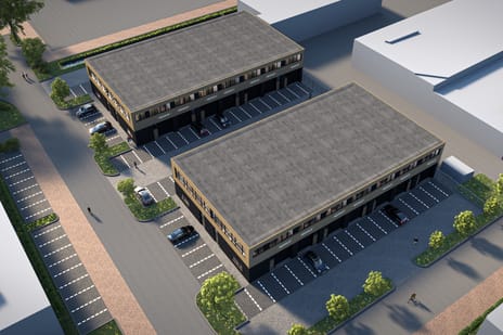 Per unit bevinden zich 2 tot 3 parkeerplaatsen aan de voorzijde van de bedrijfsunit.