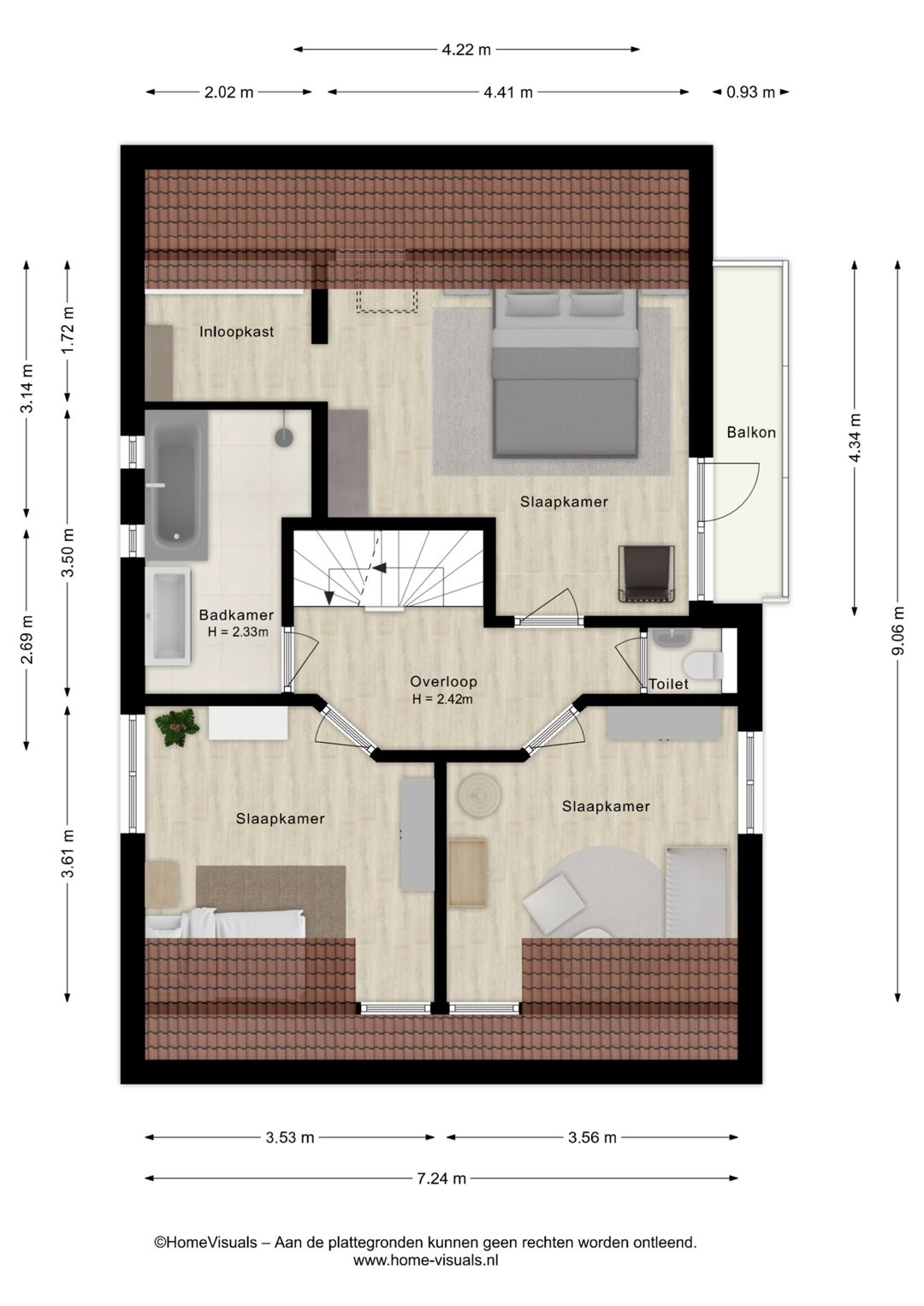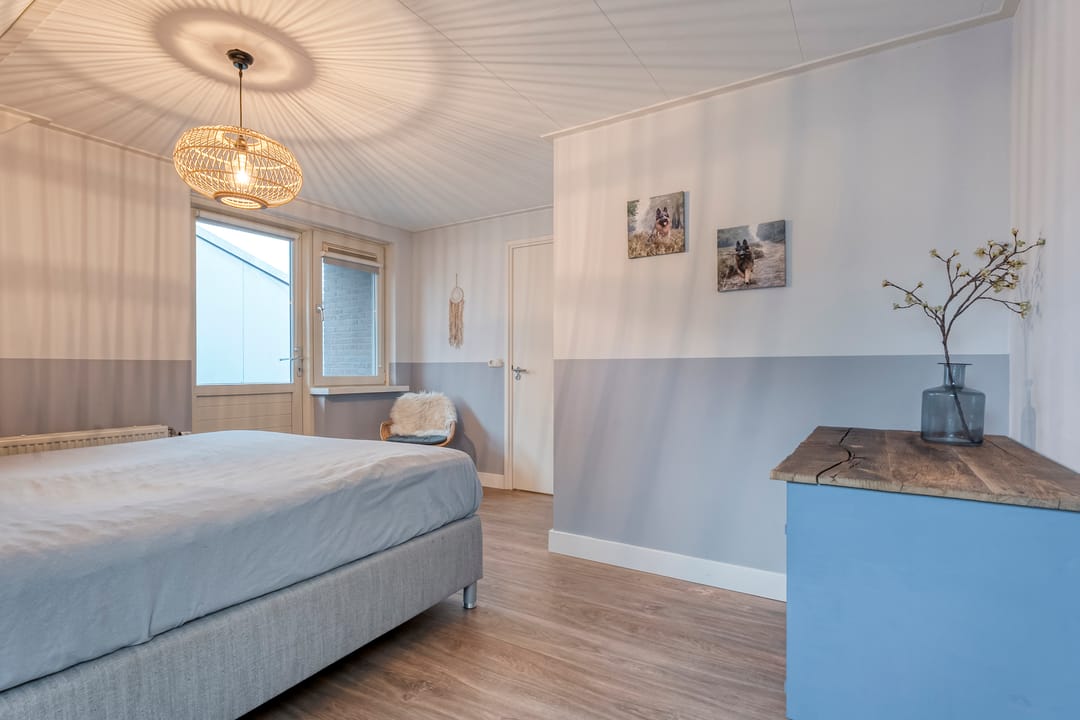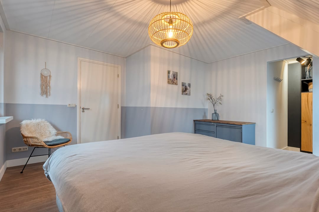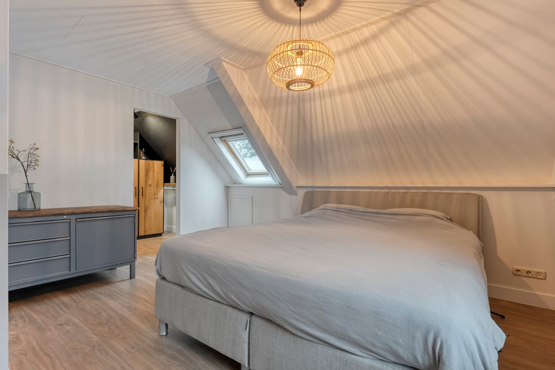 Op de verdieping bevinden zich drie fijne slaapkamers waarvan 1 met balkon en inloopkast, elke kamer met een eigen rustige sfeer en volop lichtinval. Daarnaast is er op de verdieping een separaat toilet en badkamer met ligbad, douche en wastafel. Via een vaste trap bereik je de ruime zolder, die dankzij de hoogte en oppervlakte perfect kan worden ingericht als extra slaapkamer, hobbyruimte of kantoor.