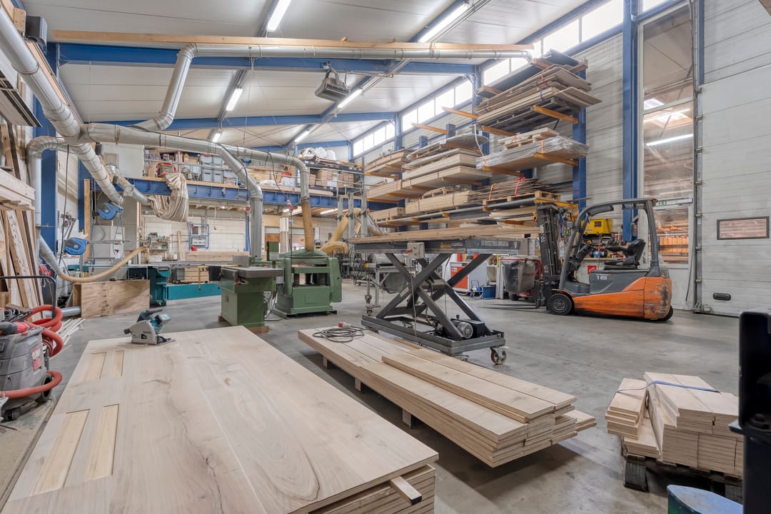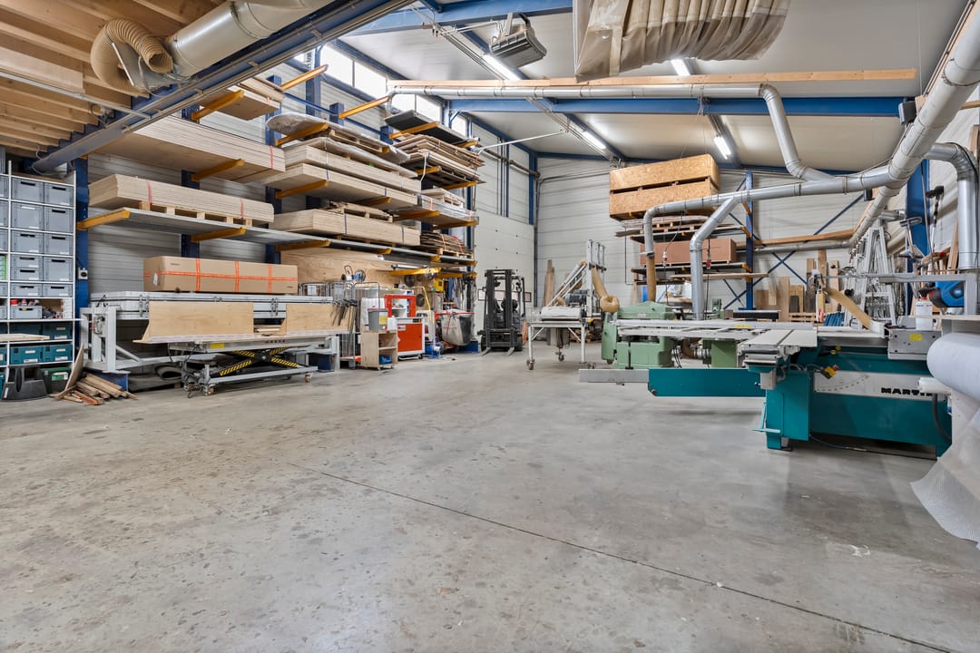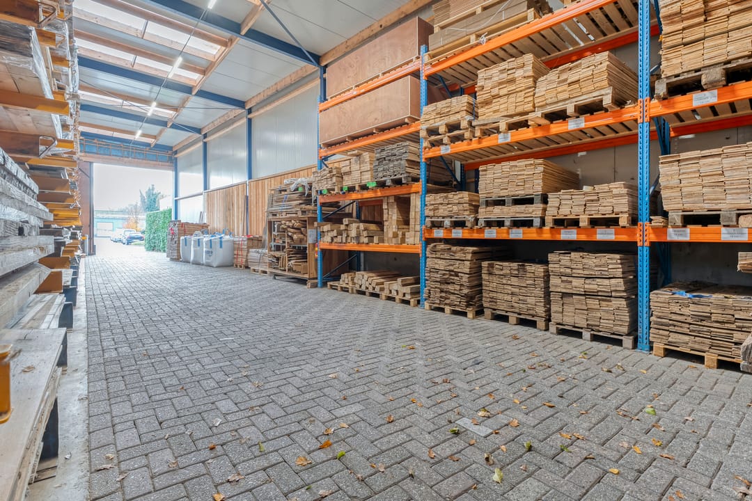 - Bruto vloer oppervlak bedrijfsruimte 502 m² (exclusief houtopslag hal circa 15,5 x 25,5 met vrije hoogte circa 5,5 meter);