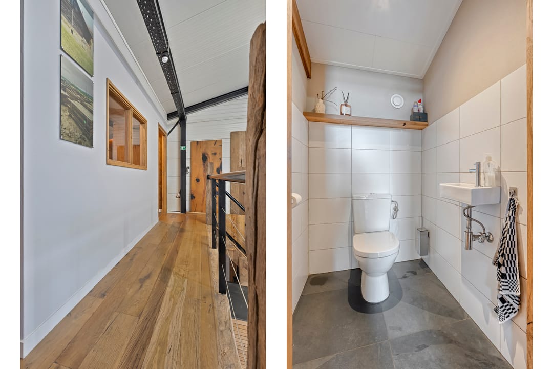 De woning is rechtstreeks verbonden met de bedrijfshal, ideaal voor wie wonen en werken wil combineren. De hal is ook via een eigen entree bereikbaar, wat zorgt voor een professionele uitstraling en privacy in huis. Op de begane grond bevindt zich een moderne, eigentijdse showroom en uiteraard de werkplaats.