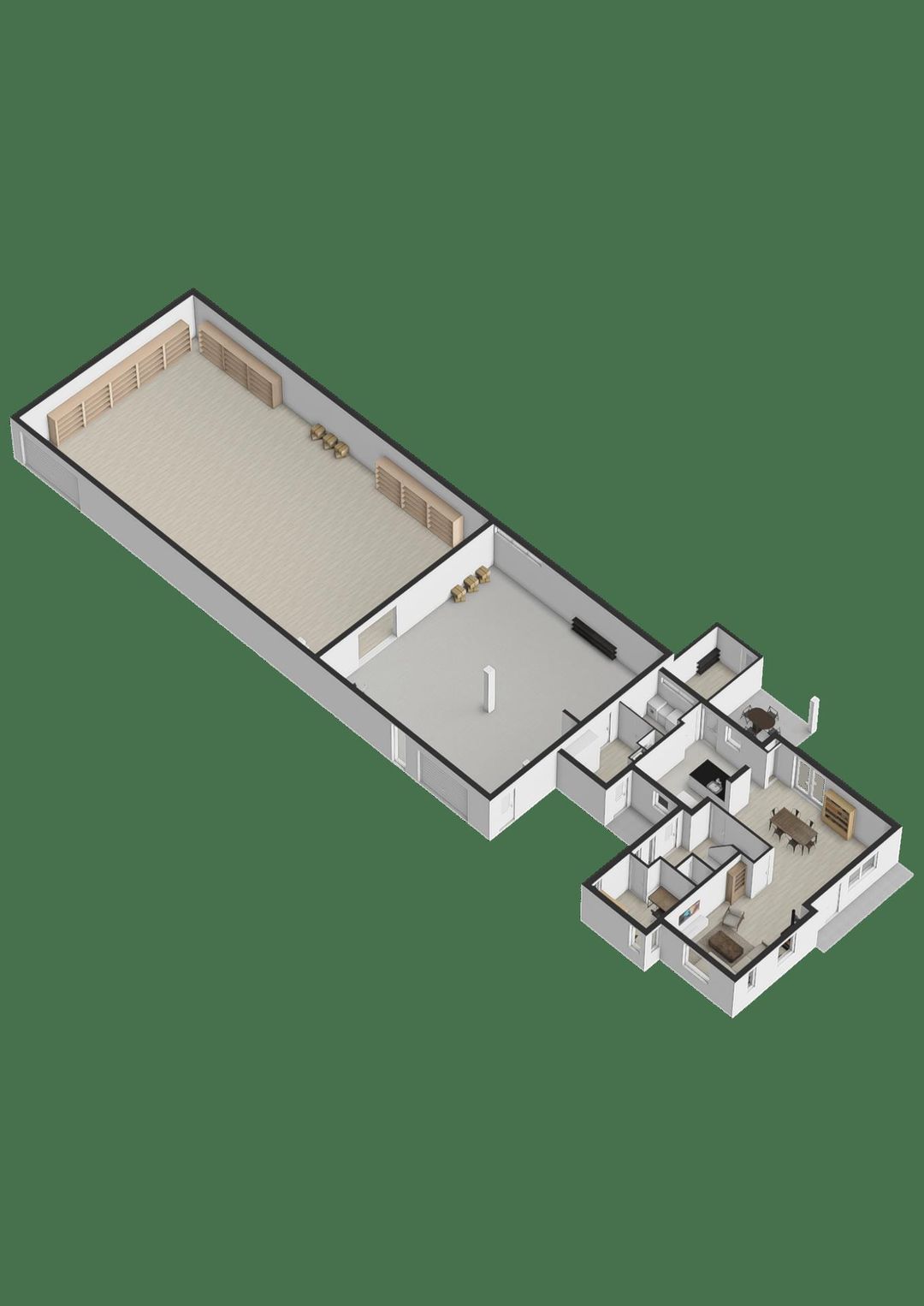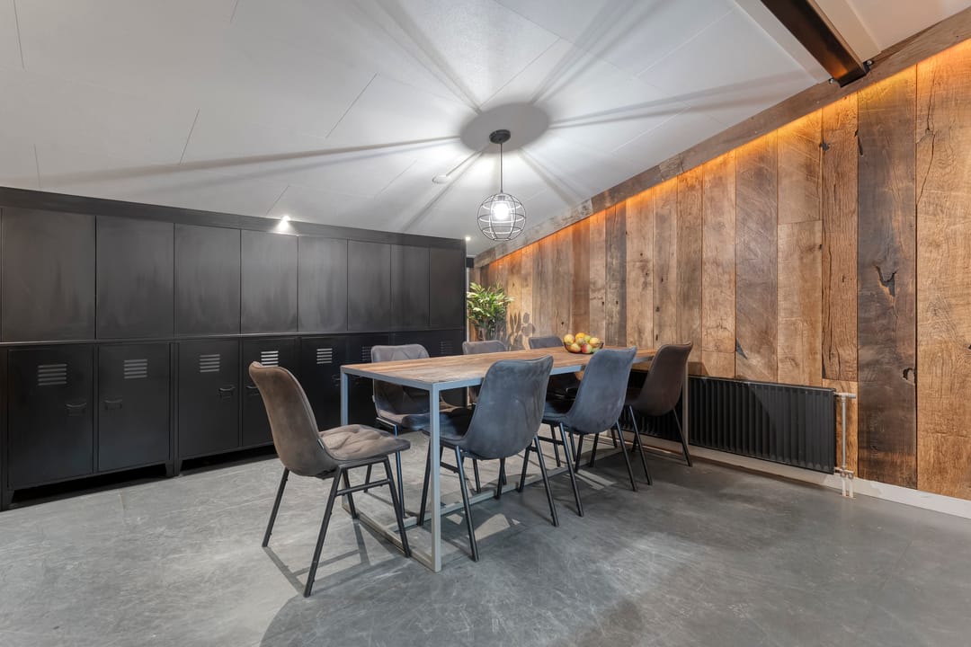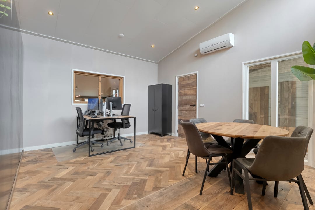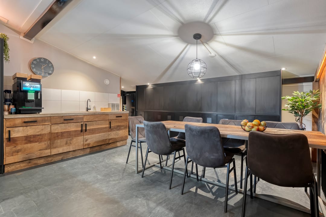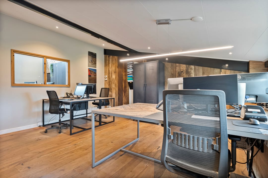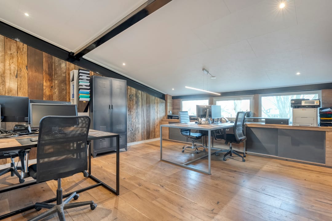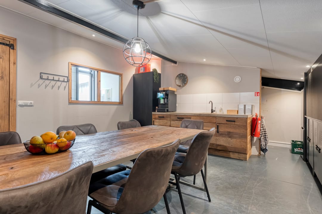 Boven de hal zijn twee ruime kantoren gesitueerd, ideaal voor administratieve werkzaamheden of overleg met klanten. Daarnaast is er een kantine aanwezig. De indeling en afwerking maken de hal uitermate geschikt voor diverse bedrijfsmatige activiteiten, terwijl de directe verbinding met de woning zorgt voor optimaal gebruiksgemak.