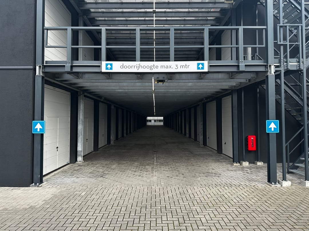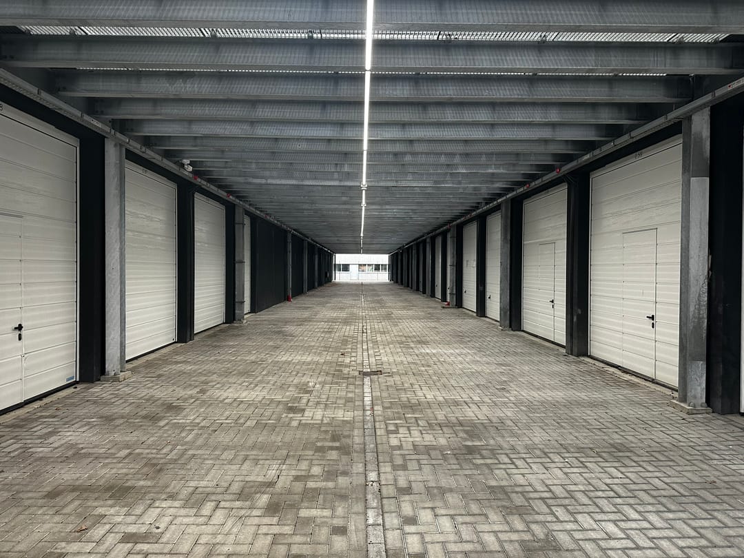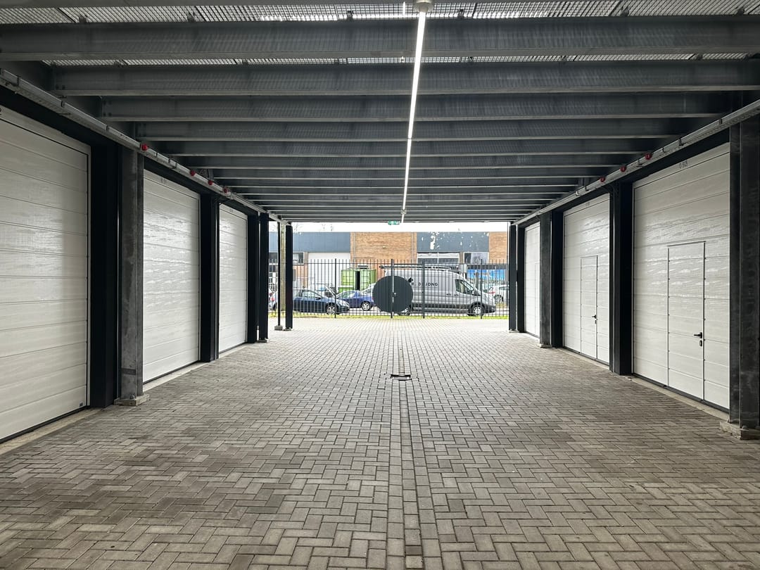 Het betreft een Type 28 XL met een oppervlakte van ca. 28 m² bvo. De opslag-/garagebox beschikt over een elektrische overheaddeur welke te openen is met een handzender en is uitgevoerd met een geïntegreerde loopdeur. Aan de binnenzijde is de ruimte voorzien van wandcontactdozen, lichtarmatuur met LED verlichting en een uitstortgootsteen met koud water.