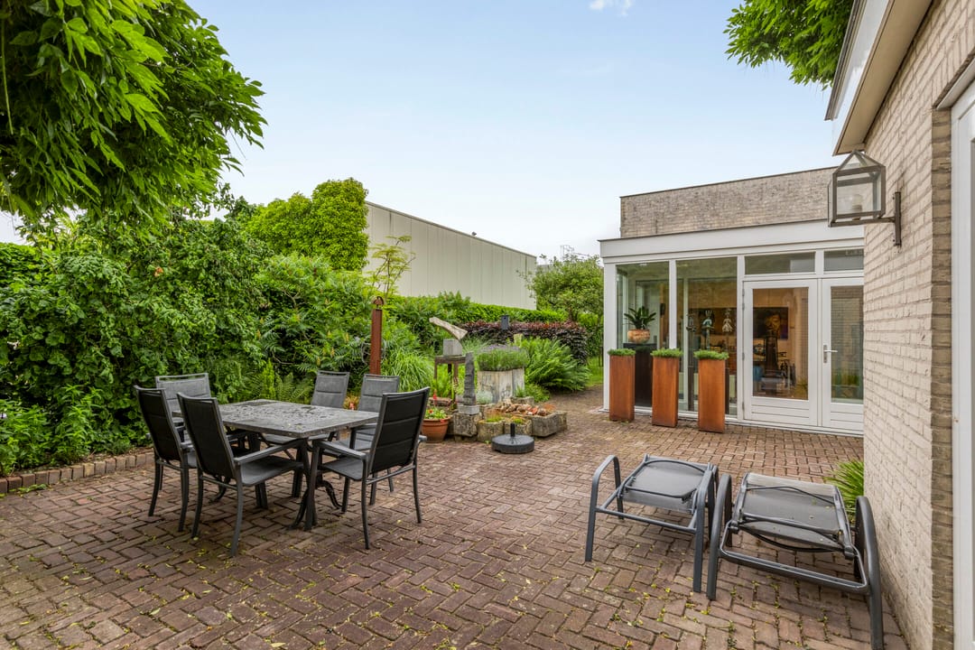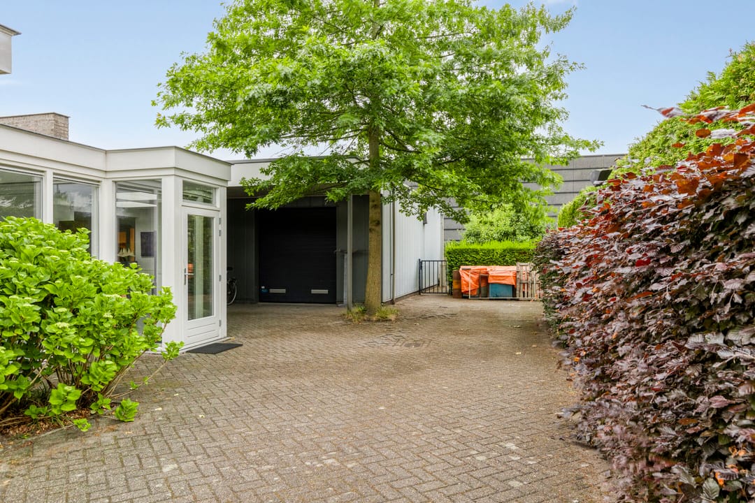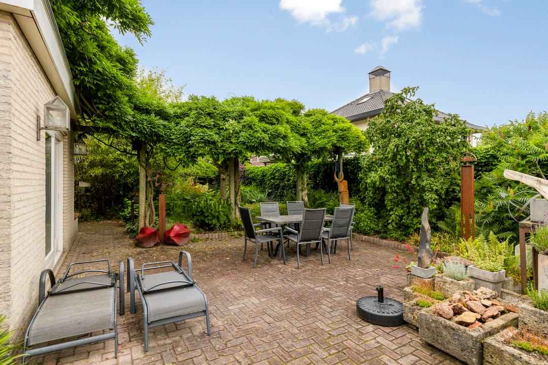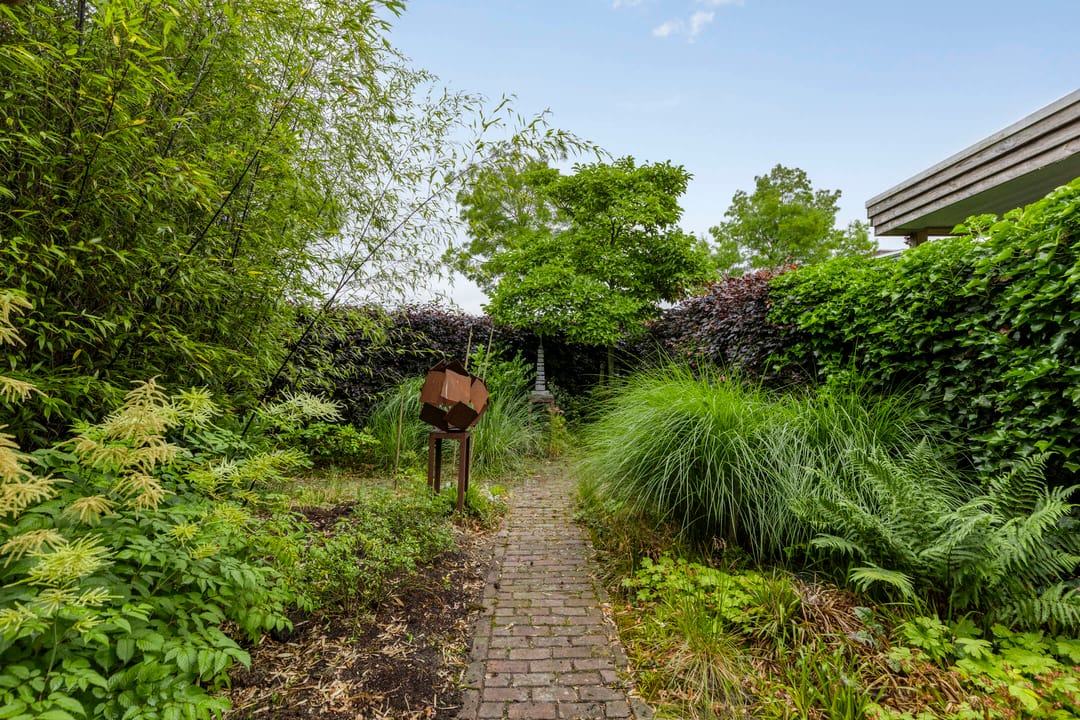 Tuin: verzorgde aangelegde tuin rondom, via een poort te bereiken oprit met klinkerbestrating aan de rechterzijde van de woning.