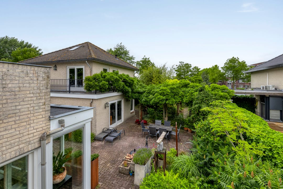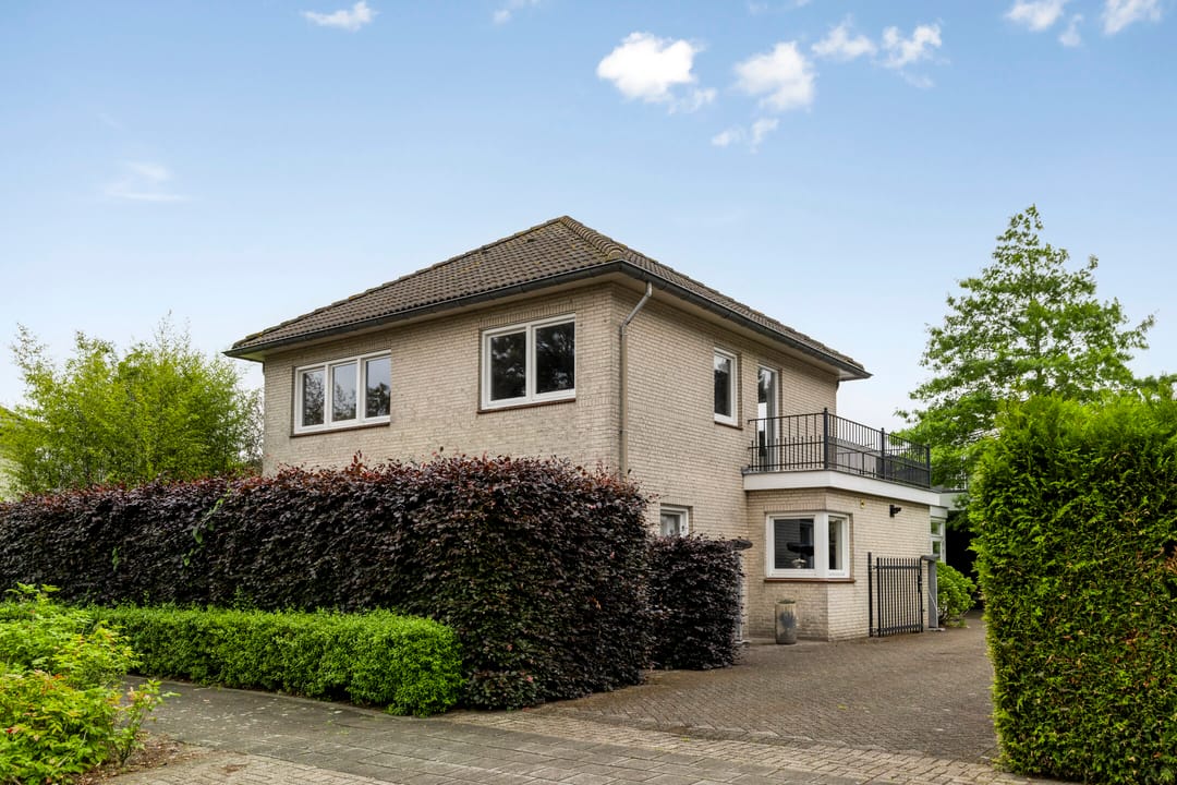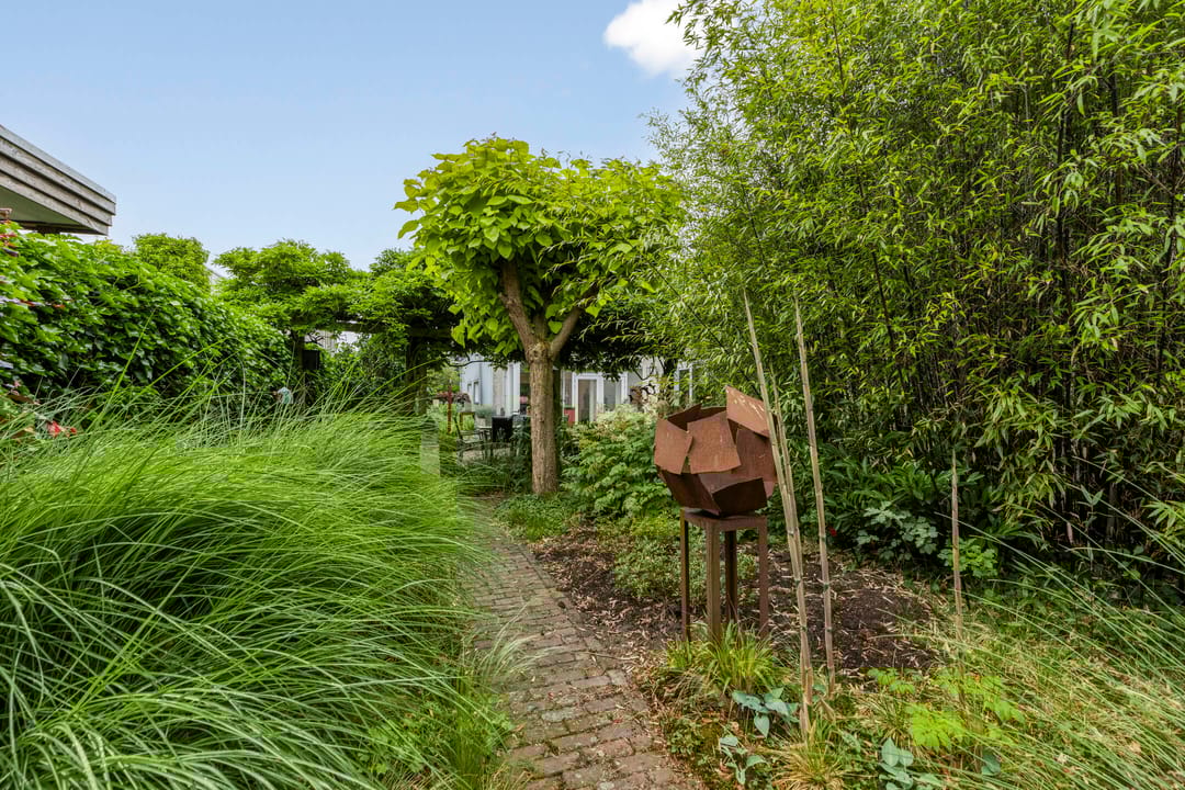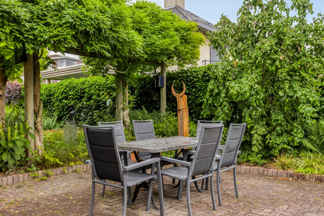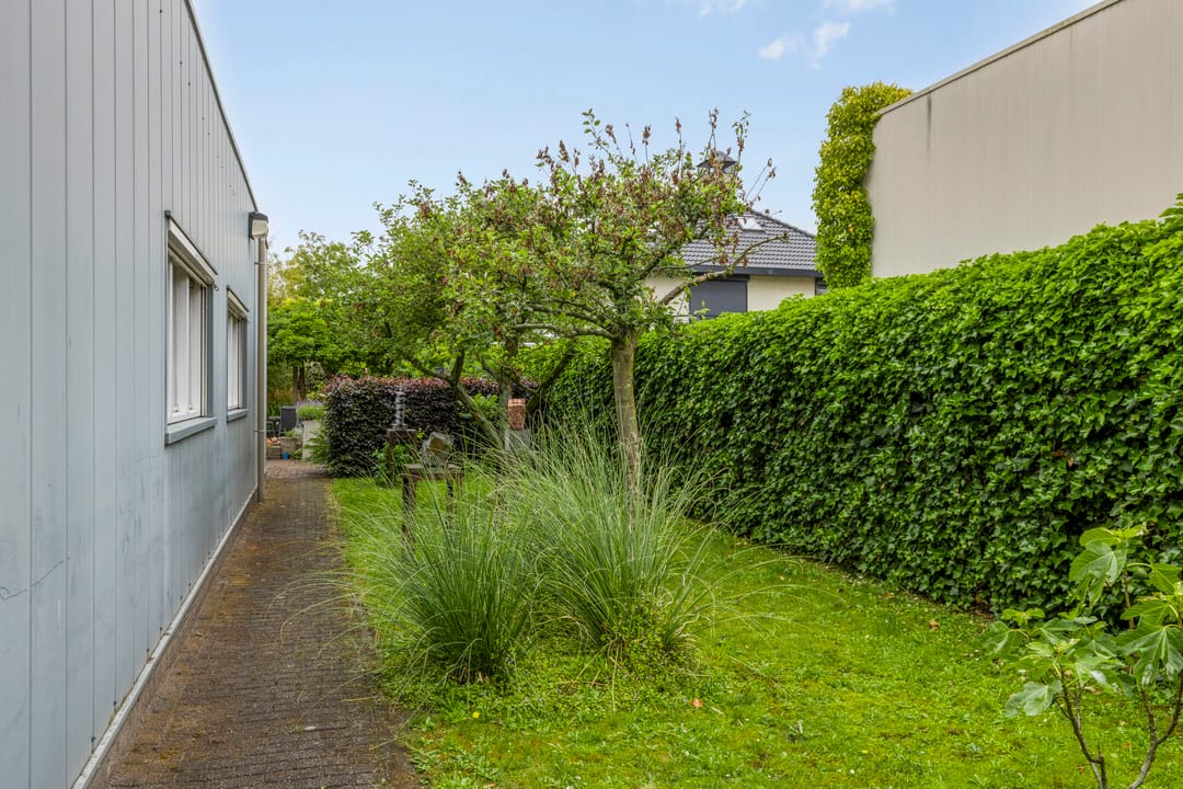 Tuin: verzorgde aangelegde tuin rondom, via een poort te bereiken oprit met klinkerbestrating aan de rechterzijde van de woning.