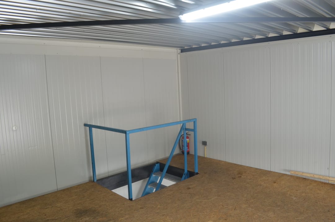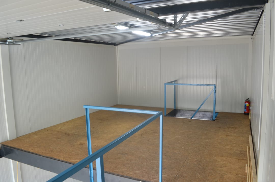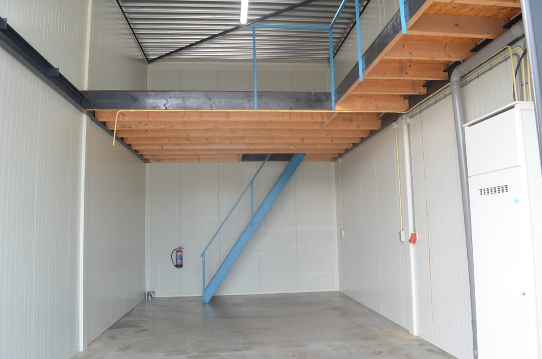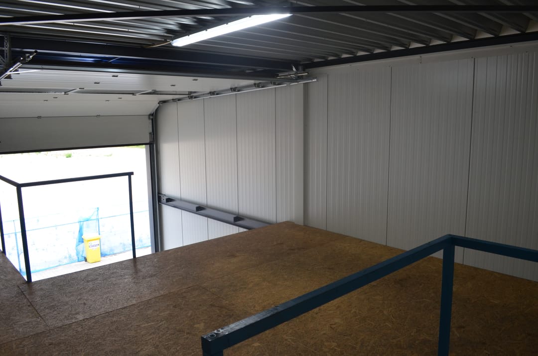Bedrijfsruimte met entresolvloer voor zakelijk gebruik of particuliere opslag, stallingsruimte voor auto, boot of caravan.