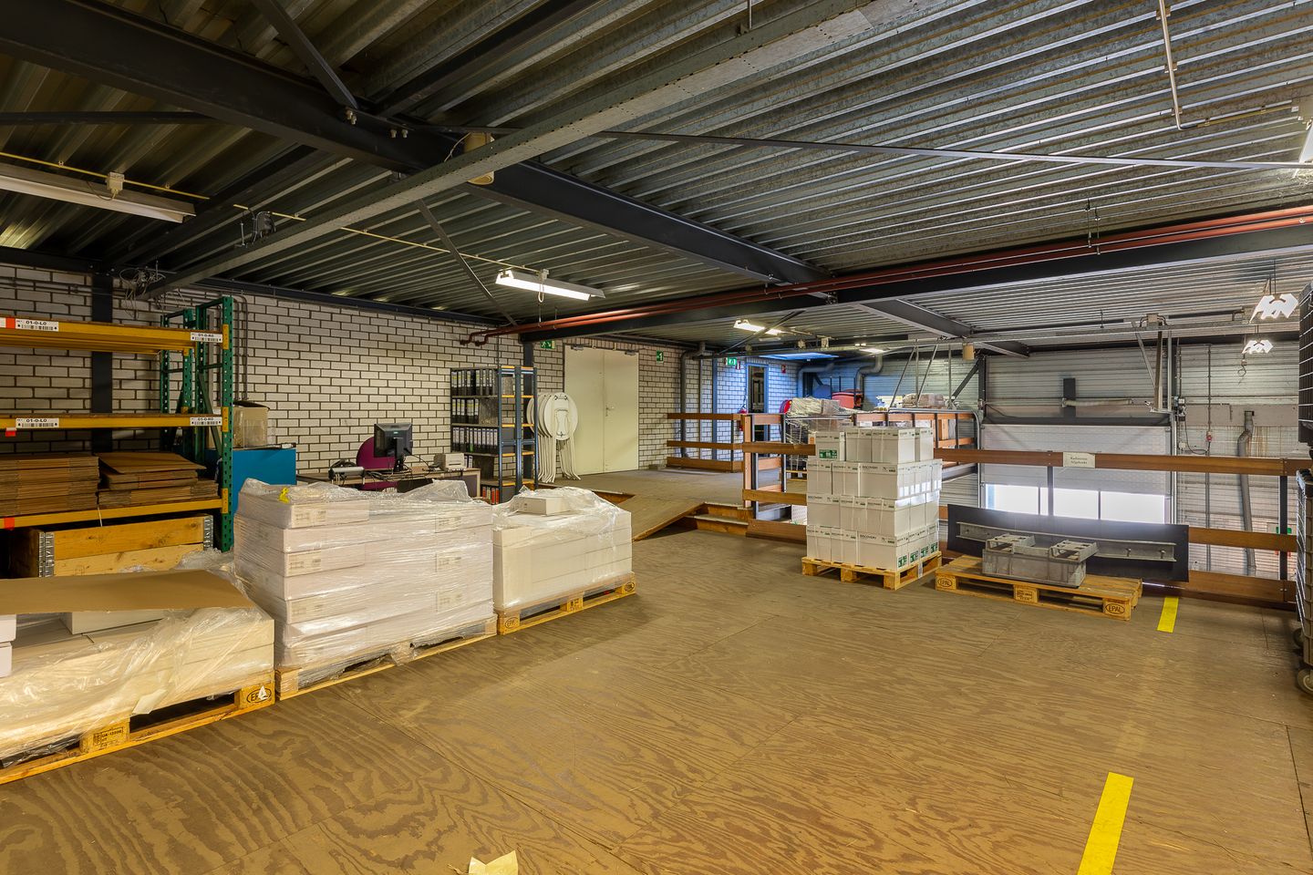 De doorgang naar het magazijn en expeditie bevindt zich aan de linkerzijde van de winkel/ showroom. Het magazijn en de expeditie hebben een vrije hoogte van 5.90 meter en zijn voorzien van vier overheaddeuren, waarvan één elektrisch. Deze overheaddeuren geven toegang tot het eigen terrein aan zowel de linkerzijde als de voorzijde van het pand. De expeditie ruimte is deels voorzien van een houten verdiepingsvloer met een vrije hoogte van 3,10 meter.