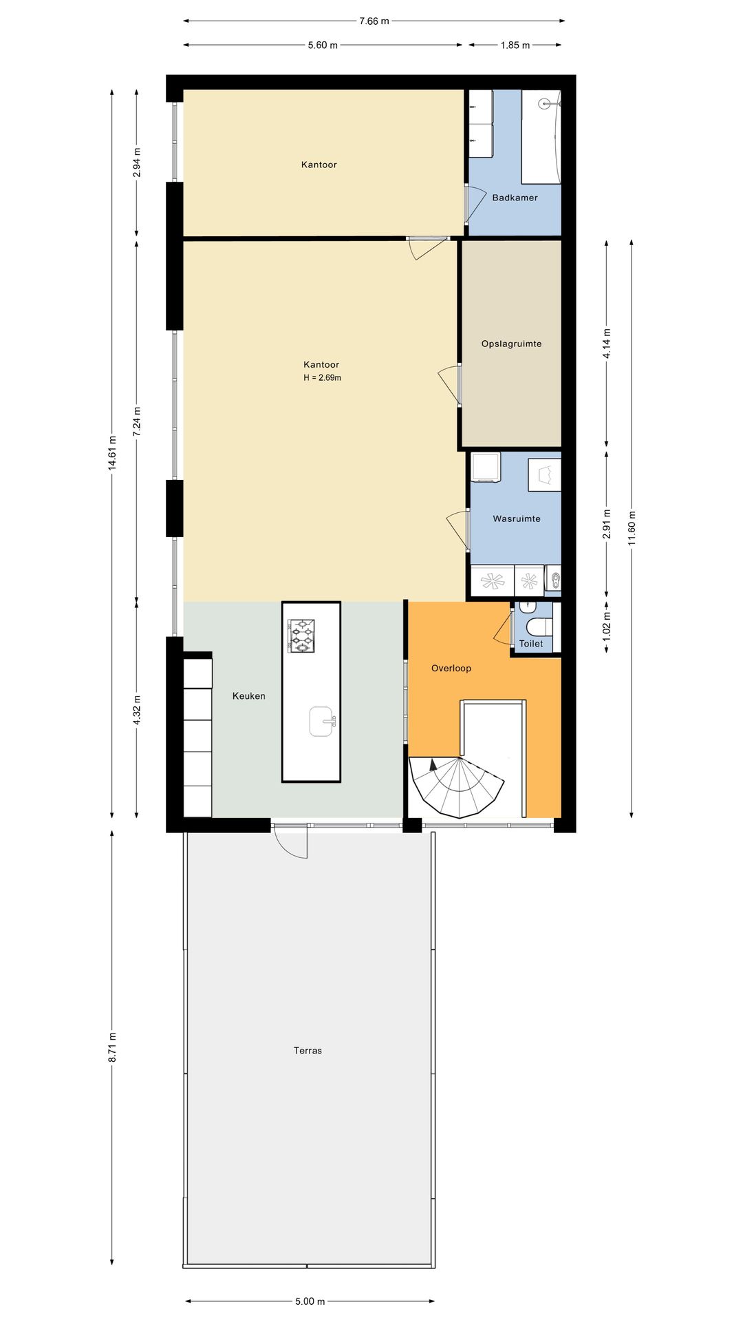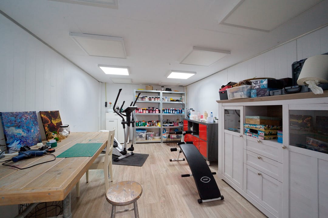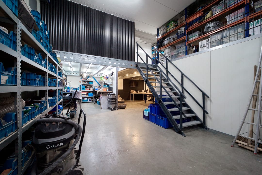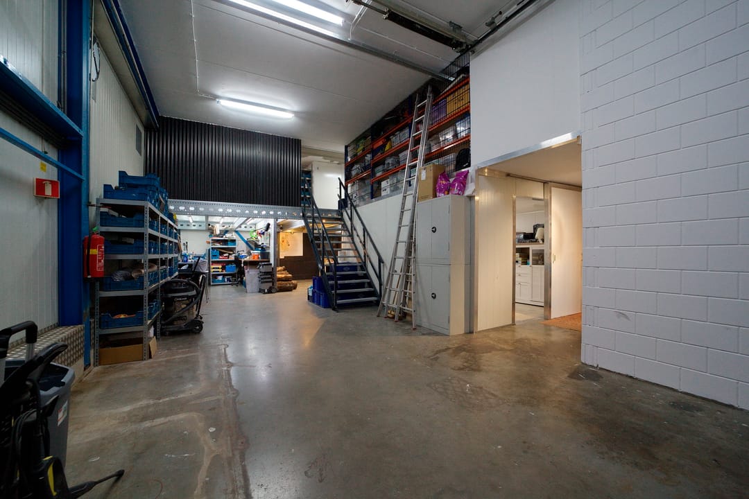 - Mechanische ventilatie, overheaddeuren, krachtstroom, betonvloer, heater, toilet en pantry