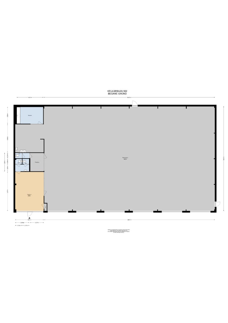 Het pand aan de Keulsebaan 502 beschikt over een ruime garage van ca. 578 m². Naast de garage bevindt zich de ontvangstruimte van ca. 34 m². vanuit de ontvangstruimte is er toegang tot de toiletruimtes. Vanuit de garage bereik je de keuken van ca. 13 m². in de keuken bevindt zich een keukenblok. Dit pand heeft een huurder.