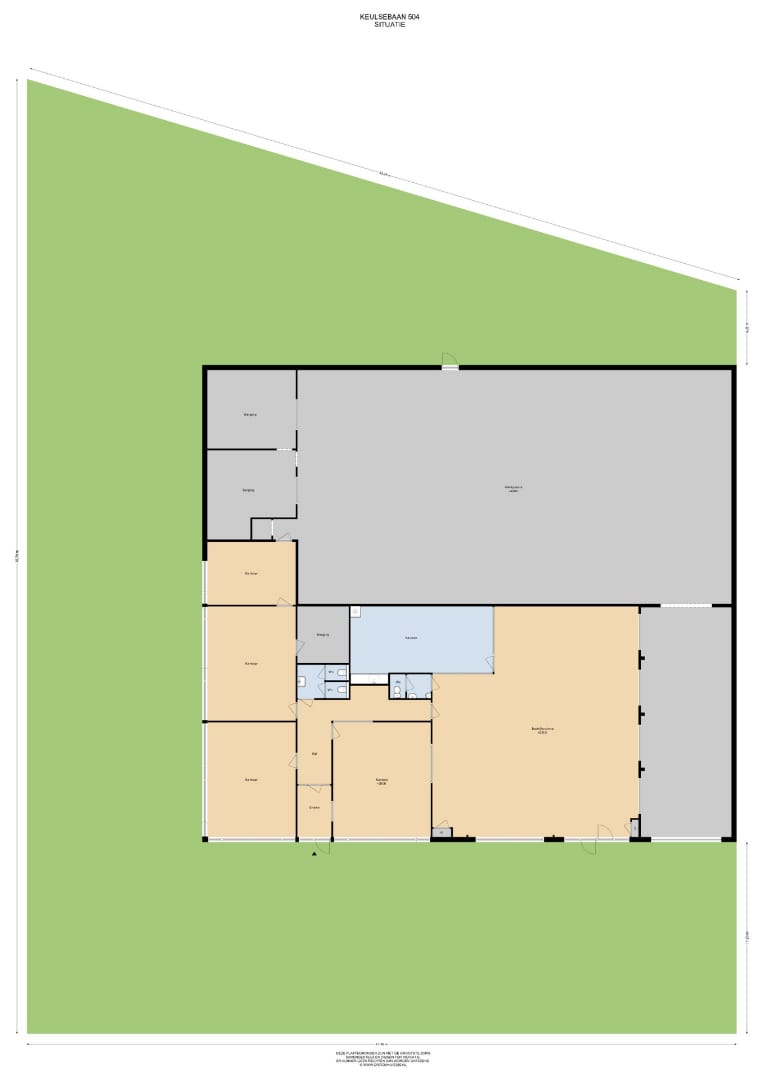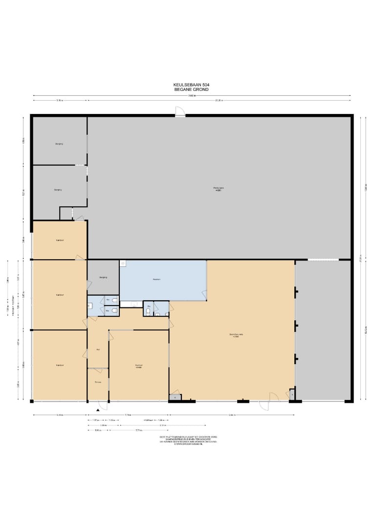 Het pand aan de Keulsebaan 504 beschikt over twee garageruimtes van ca. 69 m² en 346 m². Verder bevinden zich 5 kantoorruimtes in het pand, waarvan een grote en 4 kleinere ruimtes. Vanuit de grote kantoorruimte is de keuken toegankelijk. Dit pand heeft twee huurders.