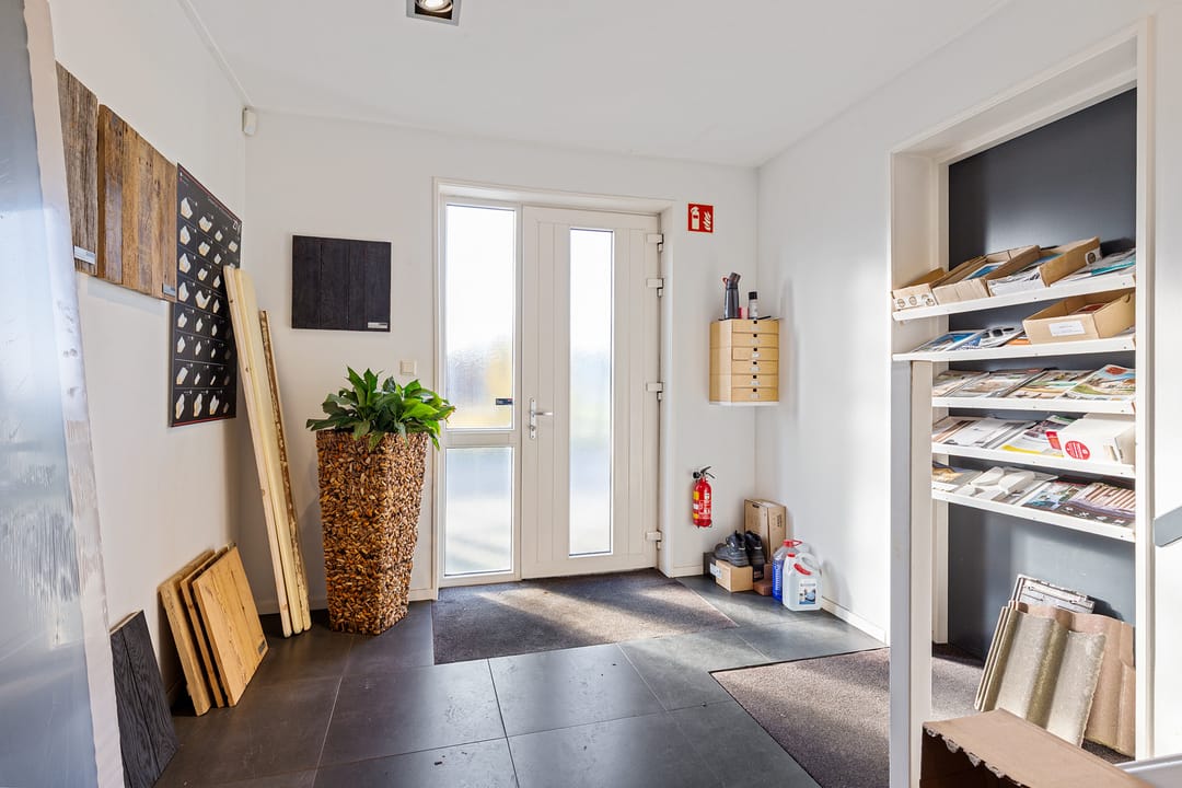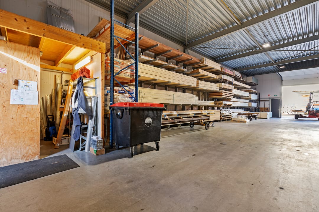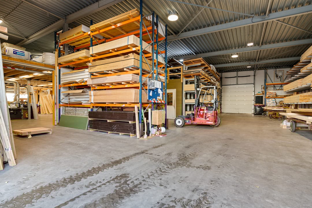 De bedrijfsruimte is voorzien van een inpandige kantoorruime (totaal ca. 240 m2) verdeeld over de twee verdiepingen. Voorzien van kantine met keukenblok en sanitair. Bedrijfsruimte van totaal ca. 315 m², werkplaats van ca. 180 m² en opslagruimte van ca. 90 m². Totaal nog voorzien van een zolderruimte voor opslagdoeleinden van ca. 180 m². Achter de bedrijfsruimte is nog een extra overkapping van ca. 50 m².