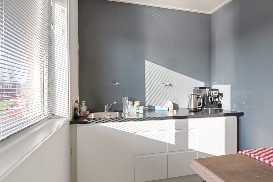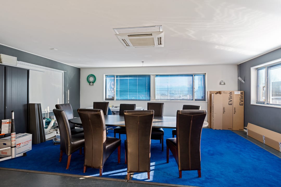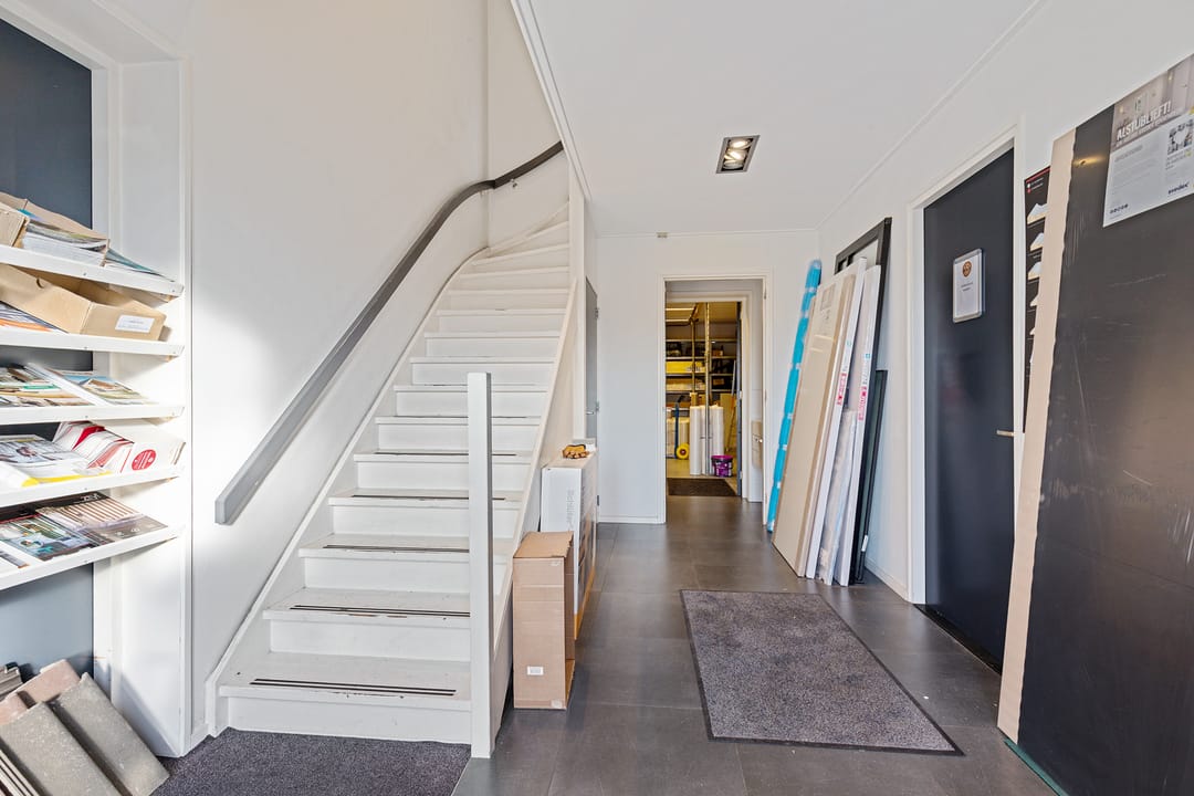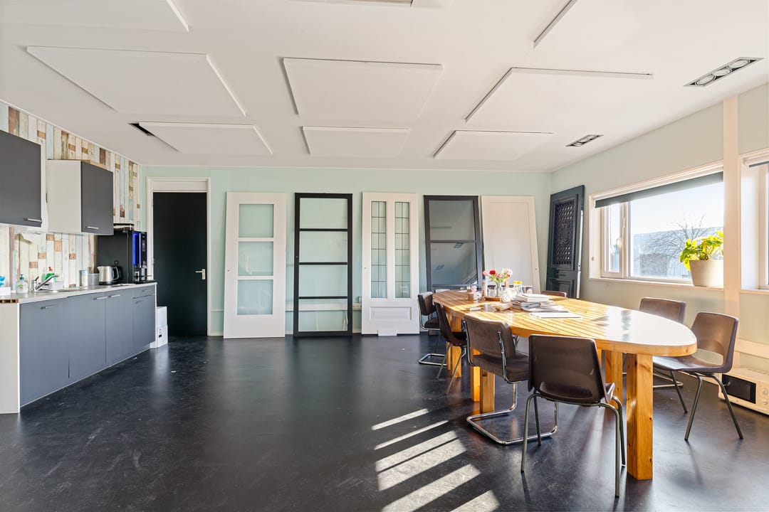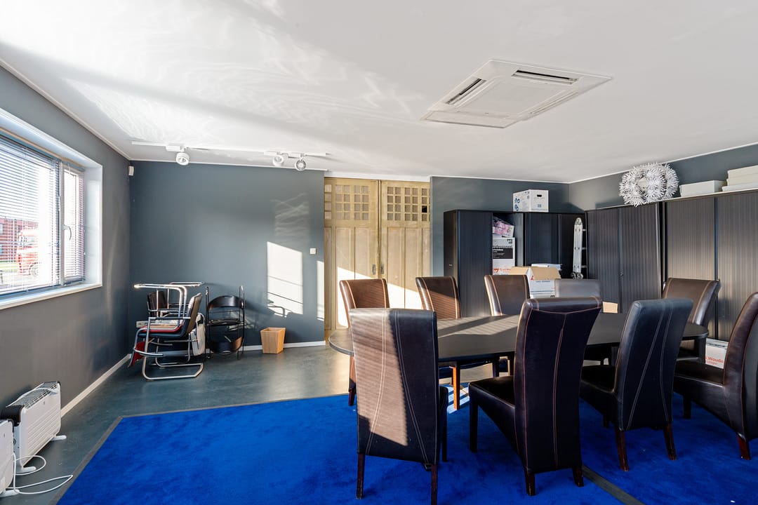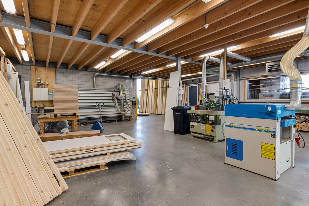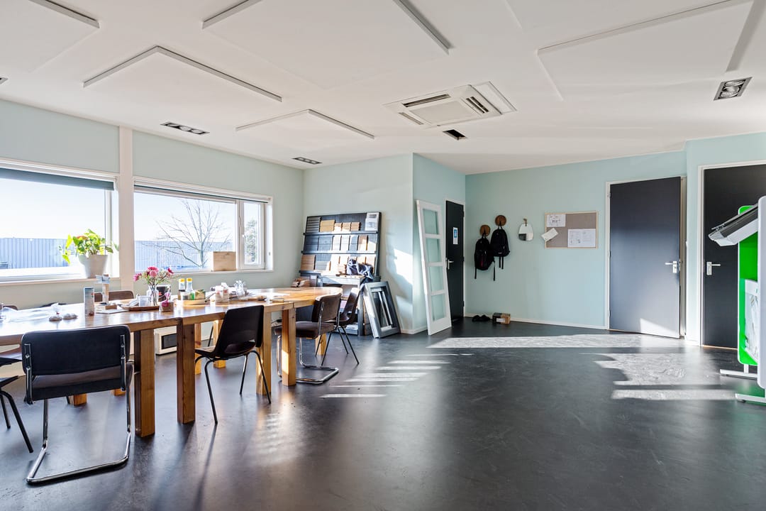 - Overheaddeuren, krachtstroom, betonvloer, toilet, pantry, airconditioning, inbouwarmaturen en te openen ramen