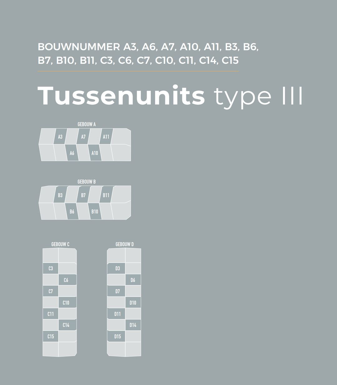 Tussenunits type III hebben een vloeroppervlakte van circa 102 m² en is verdeeld over circa 51 m² op de begane grond en circa 51 m² op de eerste verdieping.