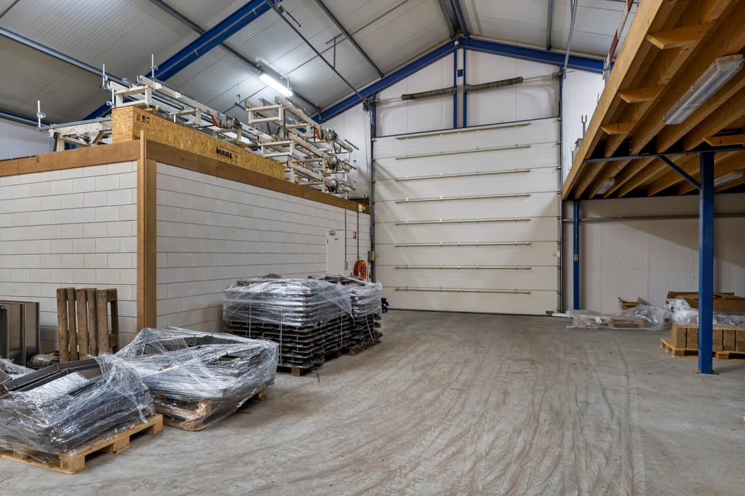 - Overheaddeuren, krachtstroom, betonvloer, toilet, pantry en inbouwarmaturen