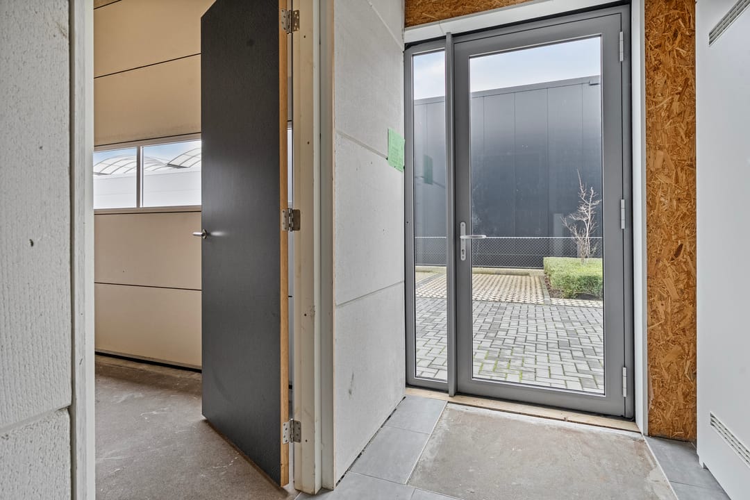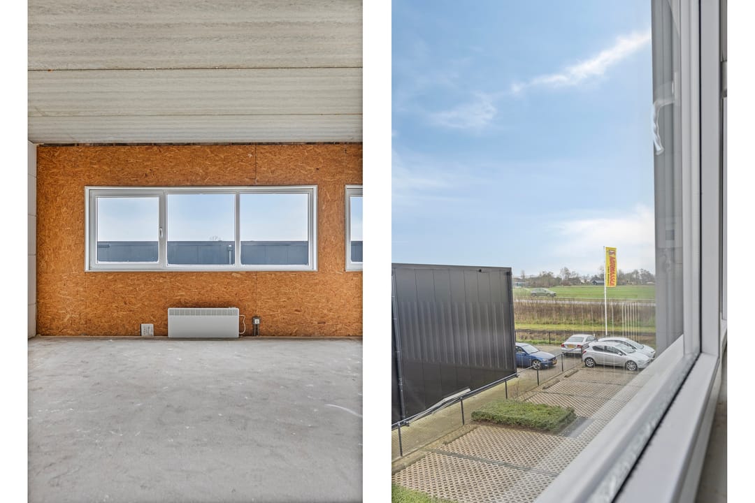 Casco (kantoor)ruimte voorzien een betonvloer, elektrische verwarming, verlichting, omvormer ten behoeve van de 4 pv-panelen/zonnepanelen en kunststof kozijnen en ramen voorzien van HR++ beglazing.