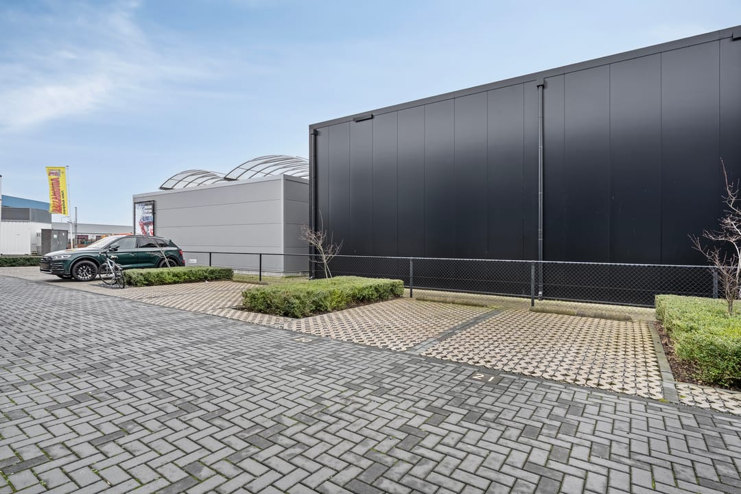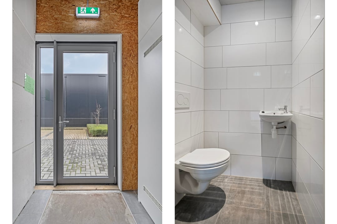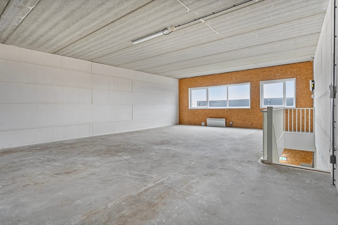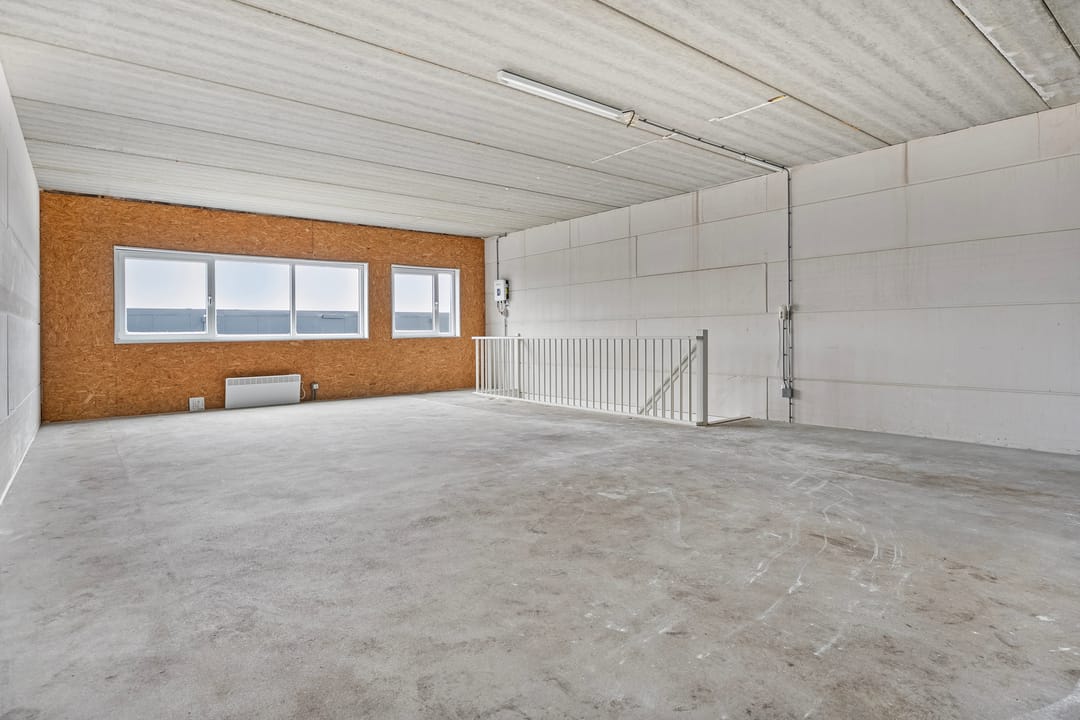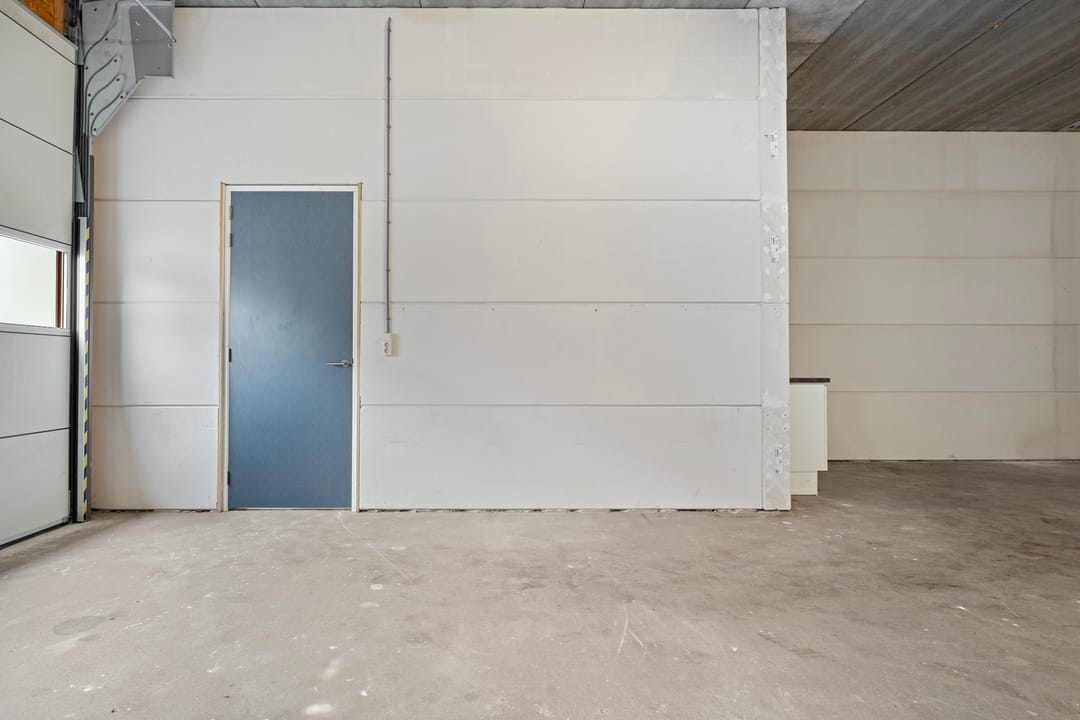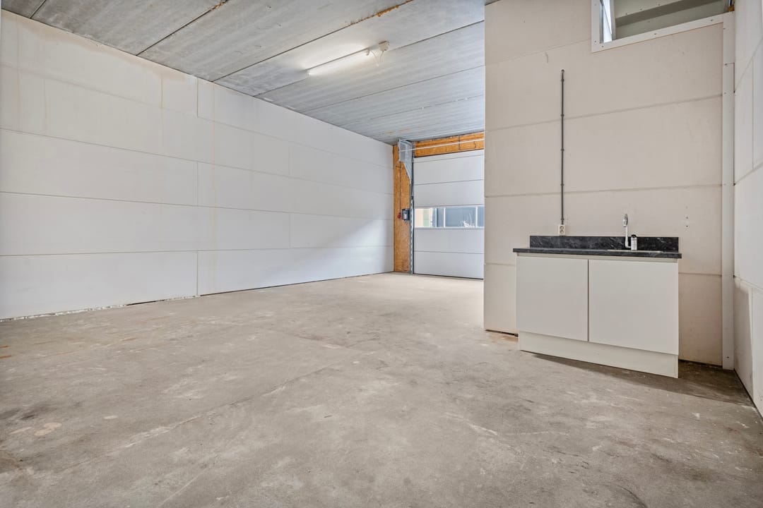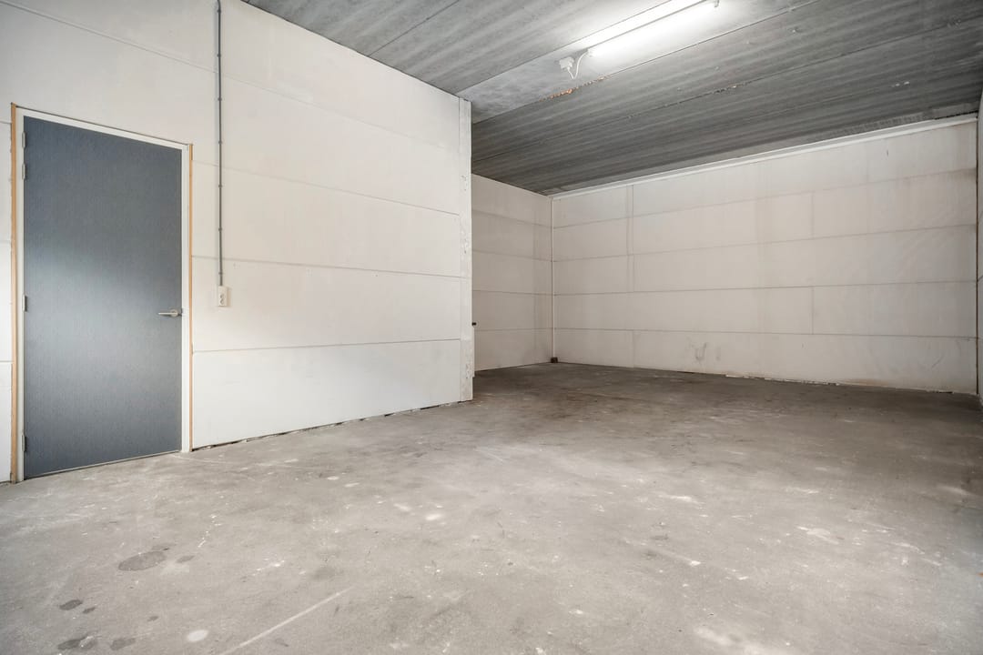 - Overheaddeuren, betonvloer, toilet, pantry en te openen ramen