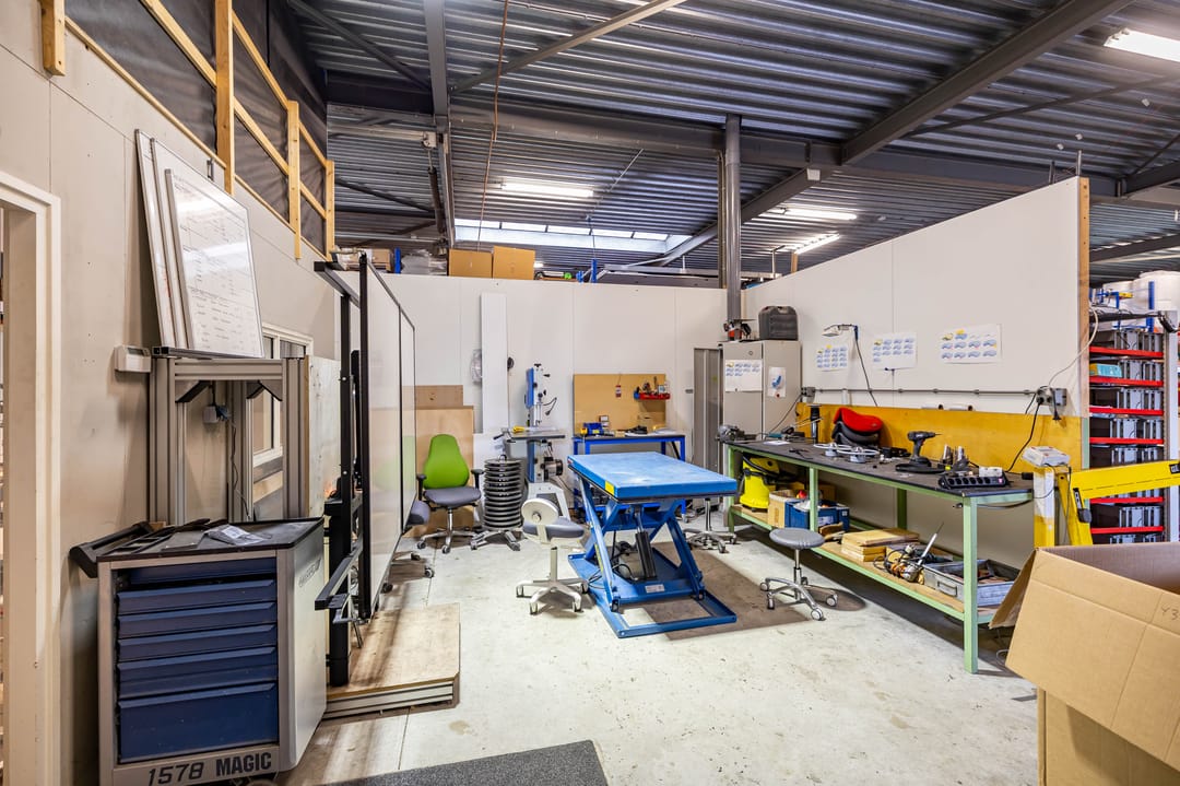- Airconditioning, lichtstraten, overheaddeuren, krachtstroom, betonvloer, heater, toilet, pantry, inbouwarmaturen en te openen ramen