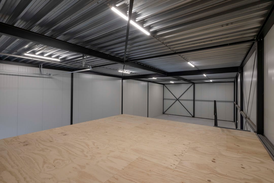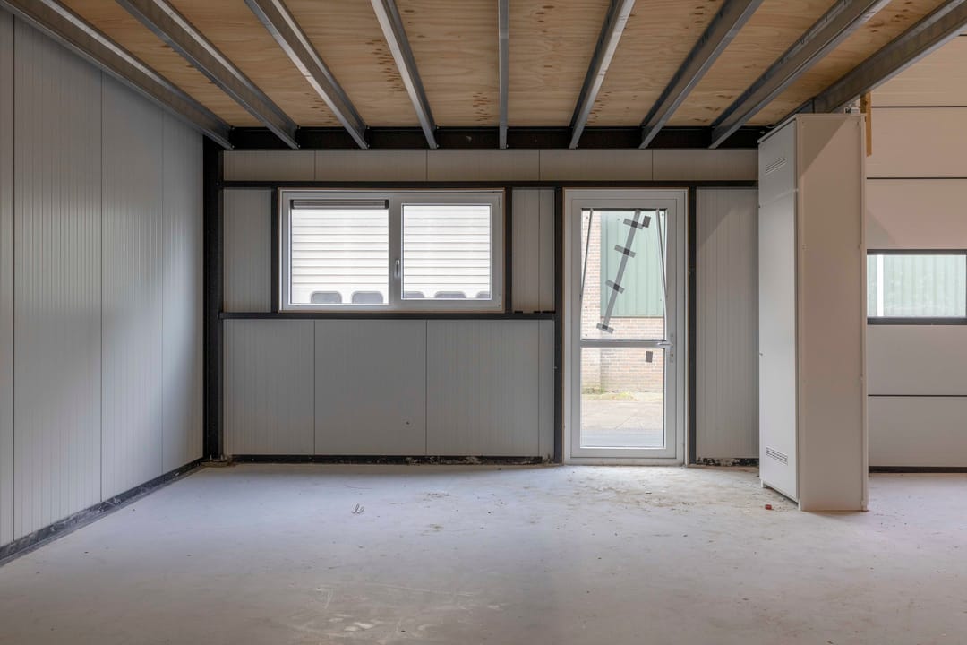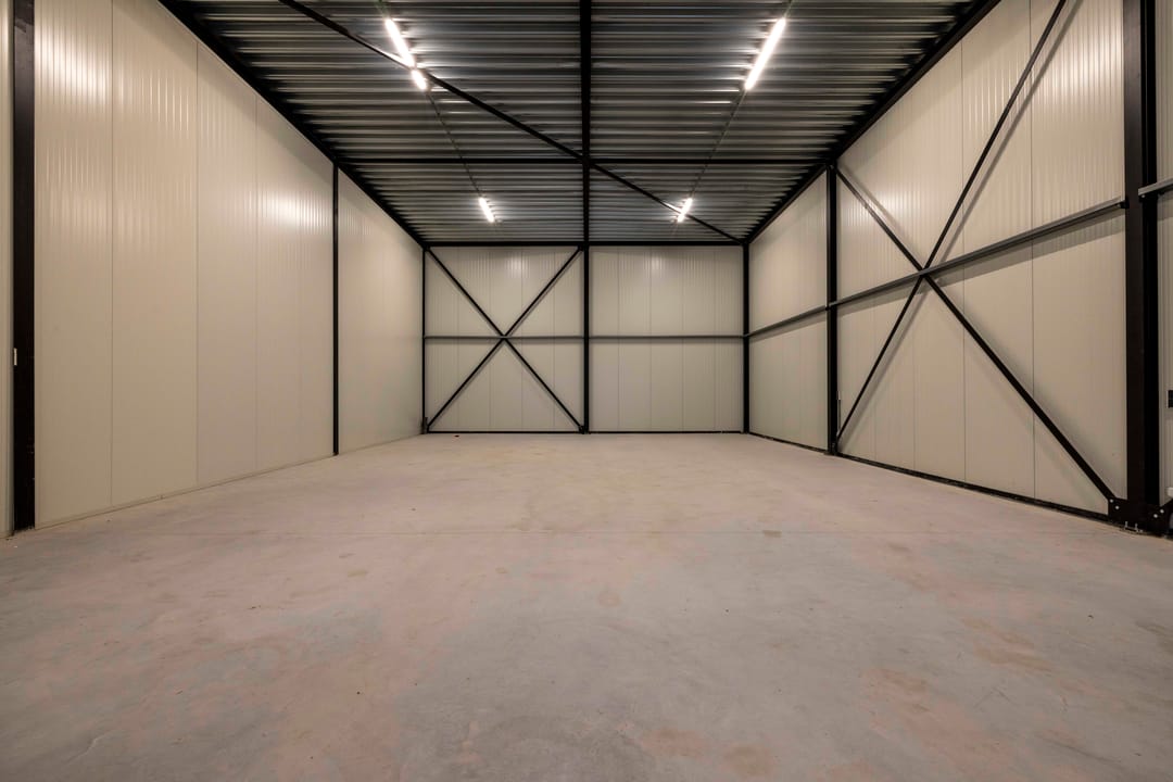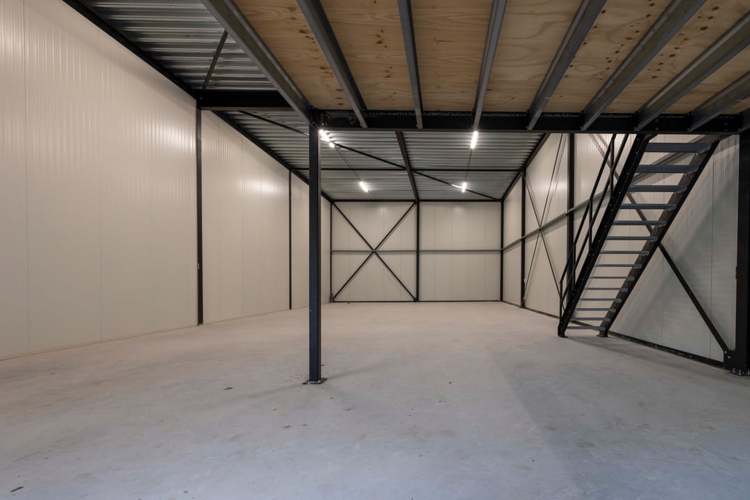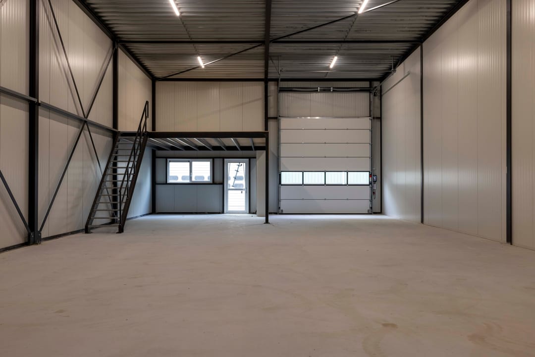 Je beschikt hier over circa 225 m² bedrijfsruimte op de begane grond en een entresol van circa 25 m², bereikbaar via een stalen trap. De unit is opgetrokken uit geïsoleerde sandwichpanelen (ca. 10 cm dik), waardoor het binnenklimaat goed te beheersen is en je energie-efficiënt kunt werken. Dankzij de elektrische overheaddeur (ca. 4 x 4 meter) en separate loopdeur is de bedrijfsruimte bovendien goed toegankelijk voor zowel voertuigen als personen.