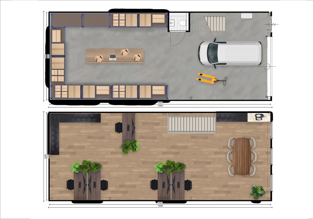 Alle ruimtes zijn voorzien van een vaste trap richting de verdiepingsvloer en toegankelijk via een loopdeur en een (nog aan te sluiten) elektrische bedienbare overheaddeur. De units worden casco opgeleverd en beschikken over een verdieping, zodat u ze naar wens kunt indelen.